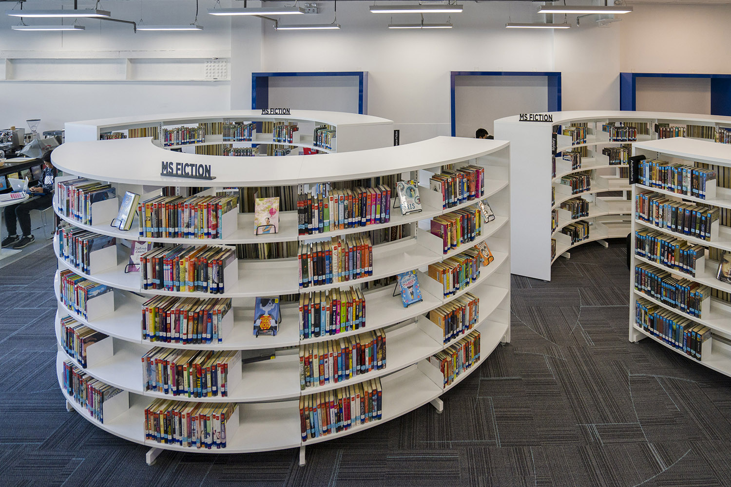 We offer special solutions to fit your library, e.g. a single-sided round shelving system combined with seating. See photos for inspiration and technical specifications under Downloads for more details.