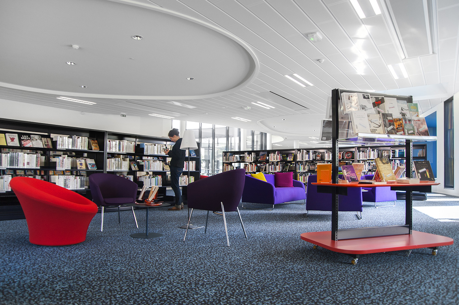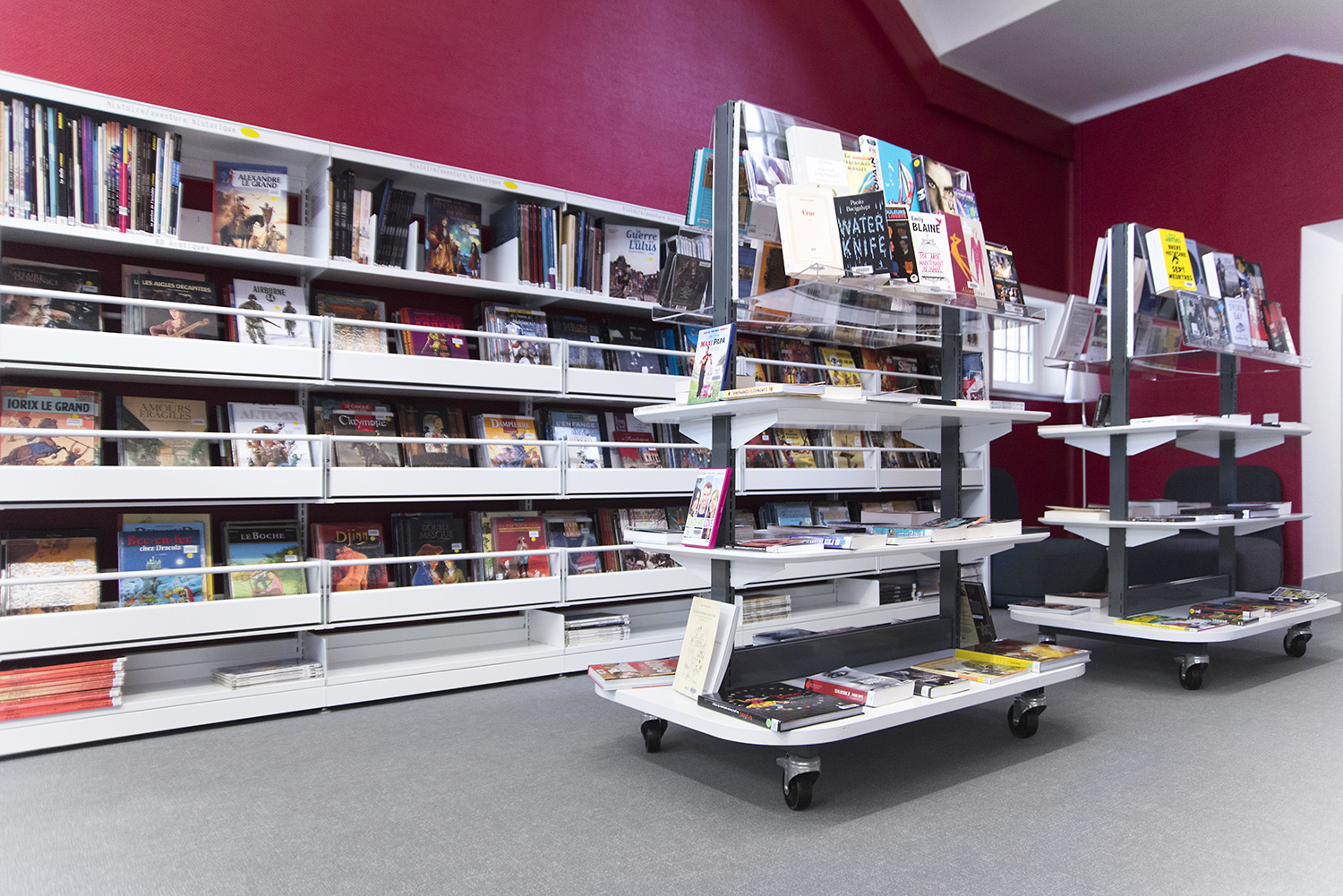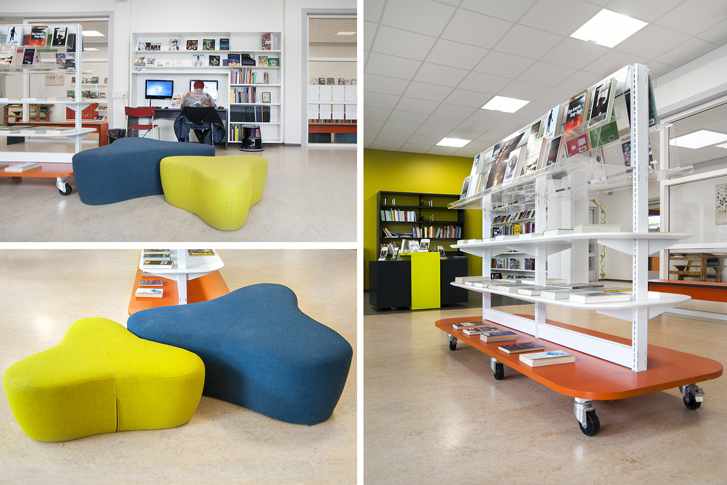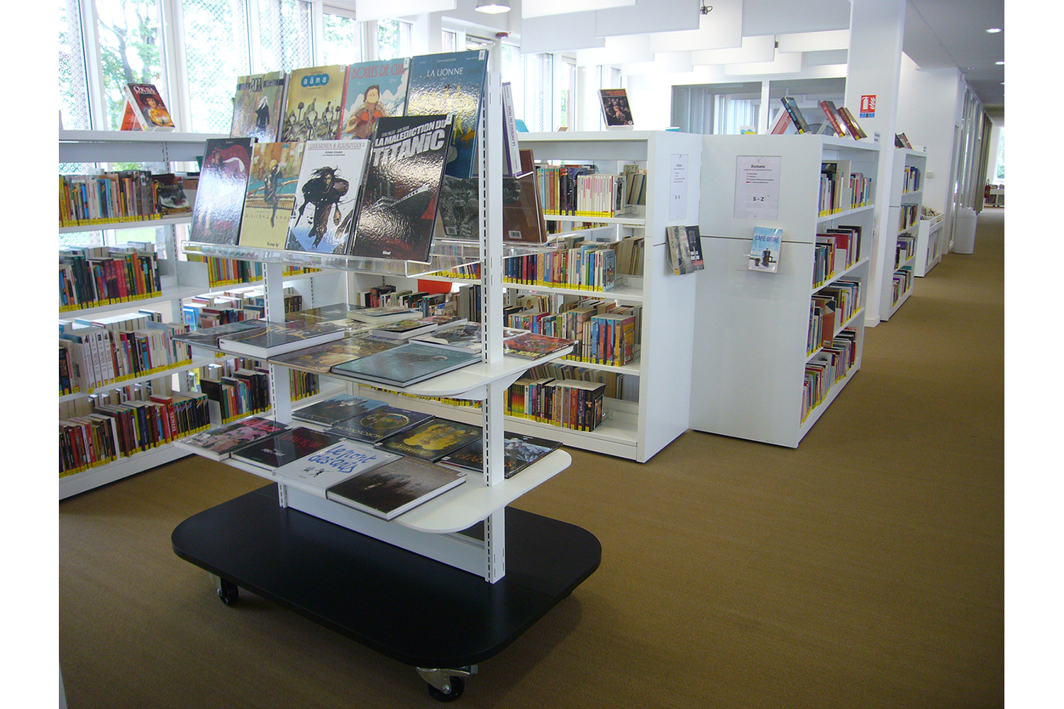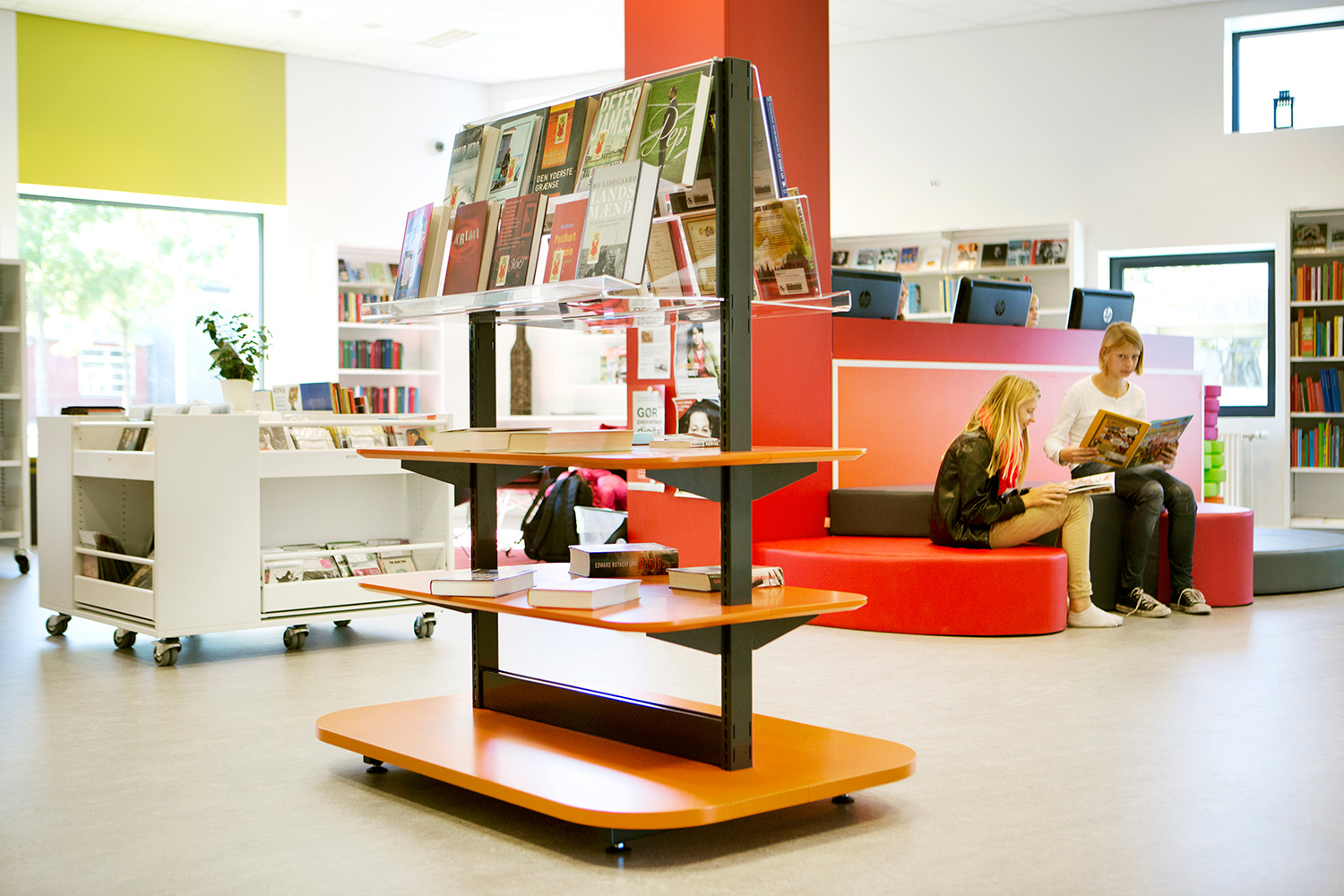 60/30 Expo is based on our 60/30 Classic steel shelving system and offers an open, transparent and floating design expression. It is ideal for displaying book covers, thus attracting library users and encouraging ”quick pick”. The design ensures easy navigation in the library and is optimal for creating themed displays using books and objects.