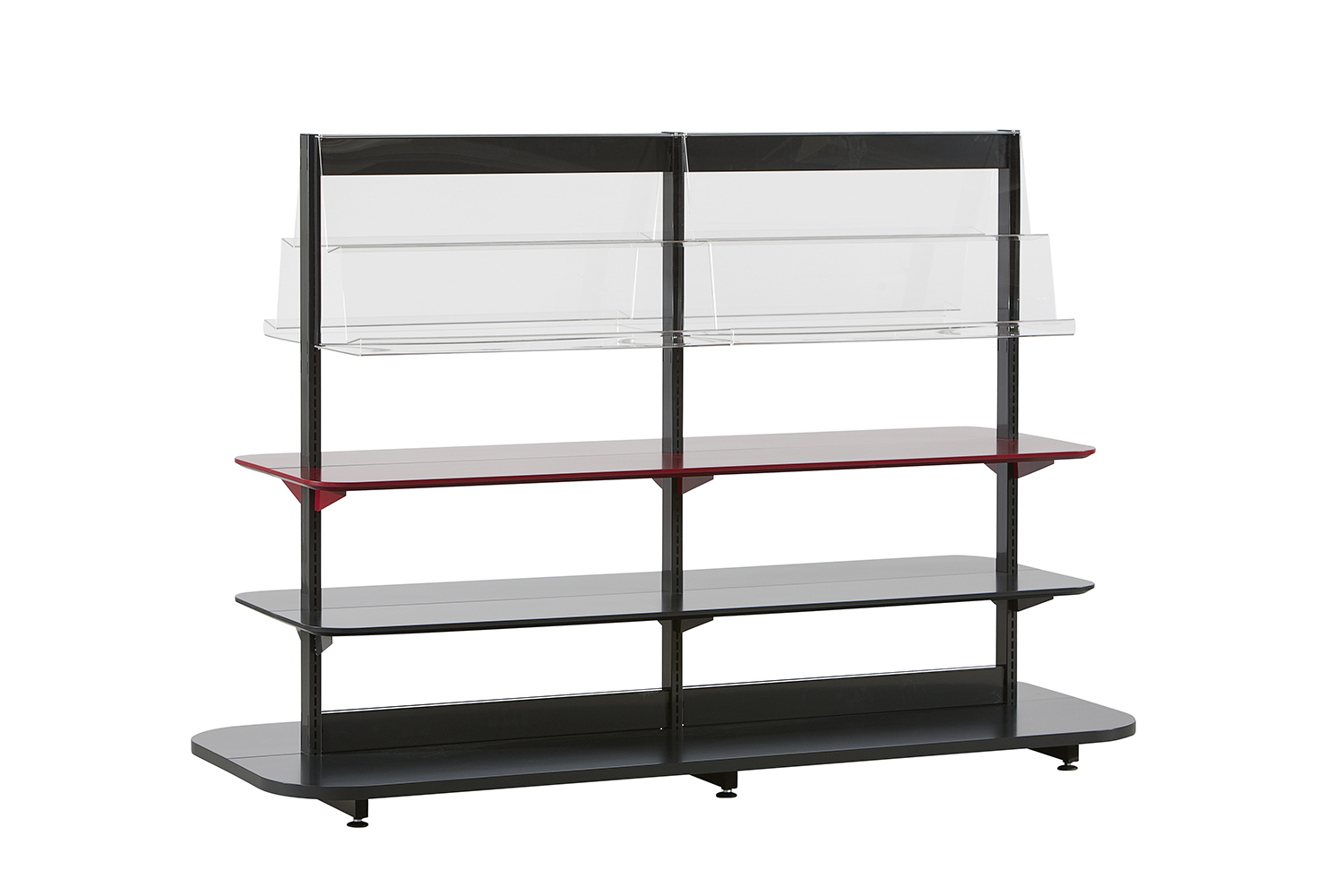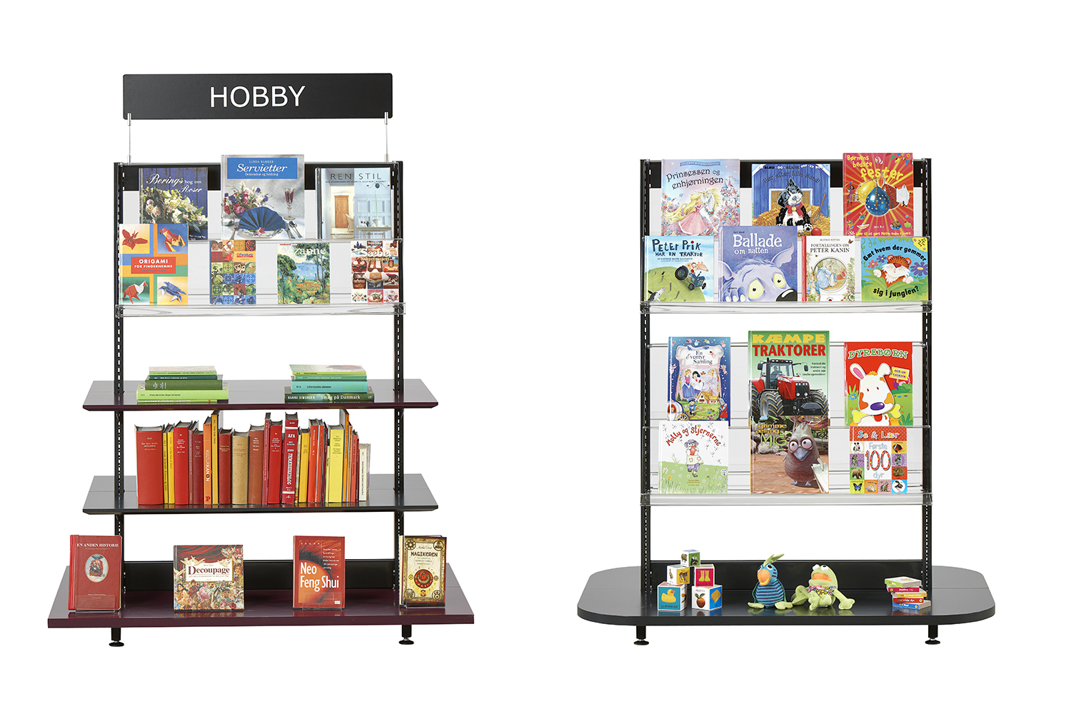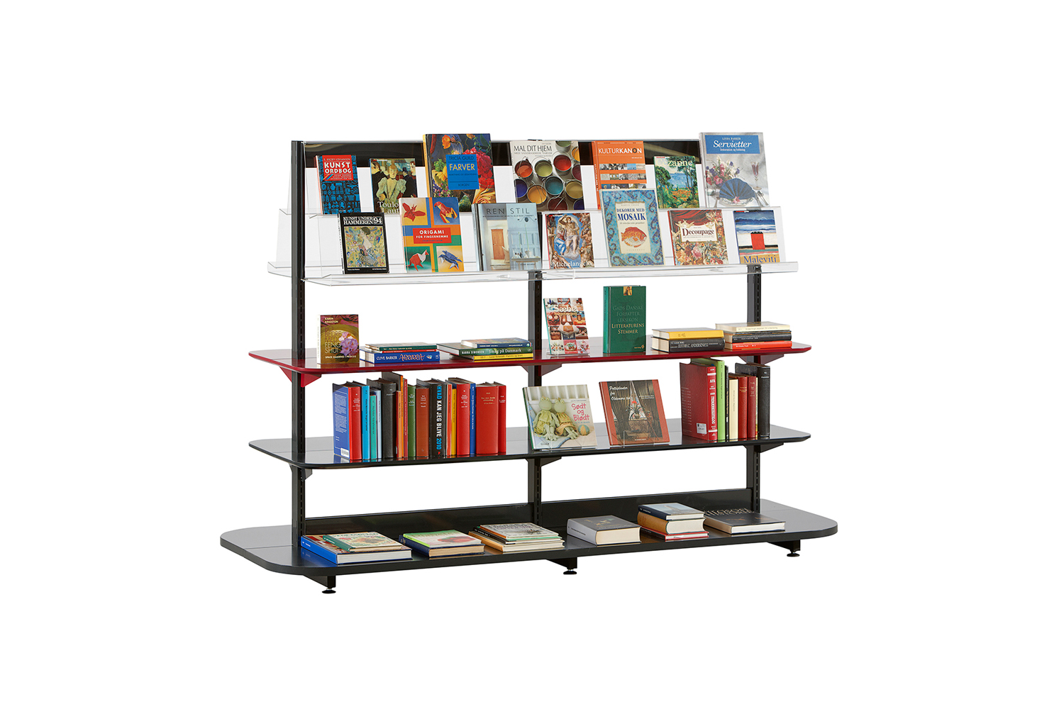 60/30 Expo is available both single- and double-sided and as starter- and add-on bays (maximum 3 bays). It is made of steel uprights, painted wooden shelves and acrylic display shelves. The steel uprights and painted wooden shelves are available in all our standard colours. Choose between curved or straight shelving corners. A wide range of ready-to-order configurations are available, but you can also build your own specific display shelving that fits the design requirements of your library.