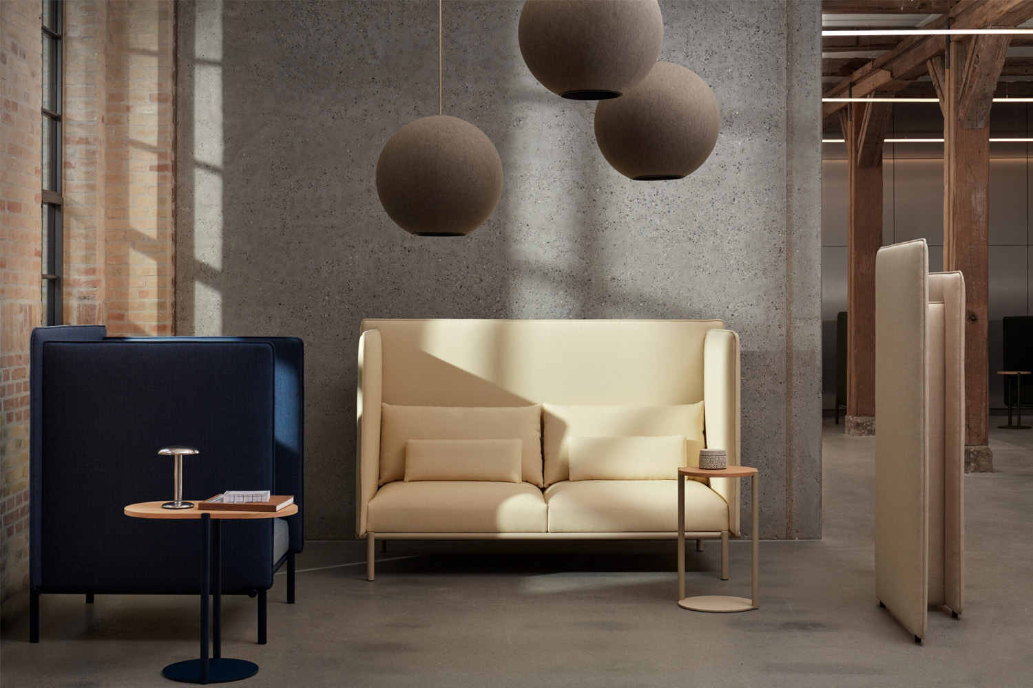 Designed to reduce noise levels and create a more peaceful atmosphere, the Akunok collection includes comfortable acoustic sofas and armchairs, an innovative floor screen and lightweight tables.