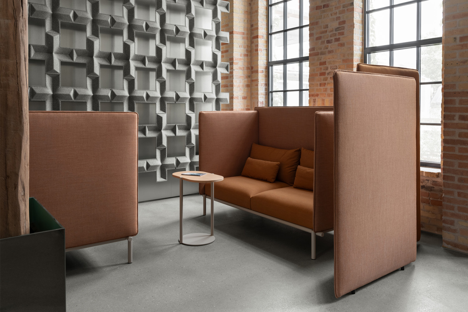 Akunok combines the words "acoustic" and "nook", offering an elegant and comfortable seating experience with a focus on sound absorption.