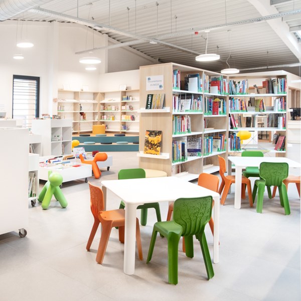A light, stackable children’s chair with a unique seatback. The back is decorated with branches, leaves and even little birds here and there.