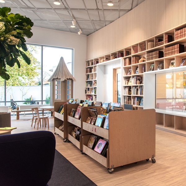Grooved rubber mats in the top compartments ensure that even a small number of books will stay upright.