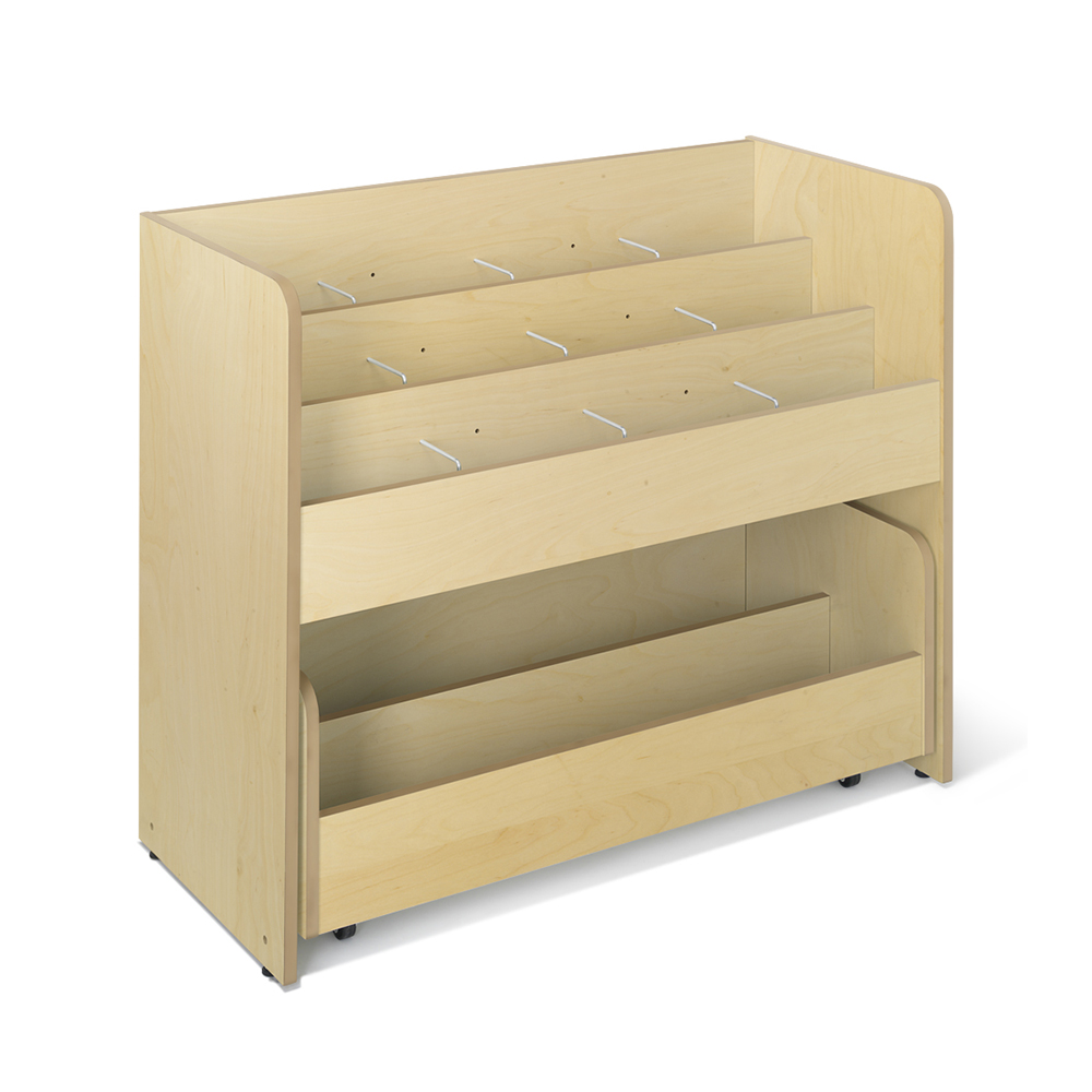 Grooved rubber mats in the top compartments ensure that even a small number of books will stay upright.