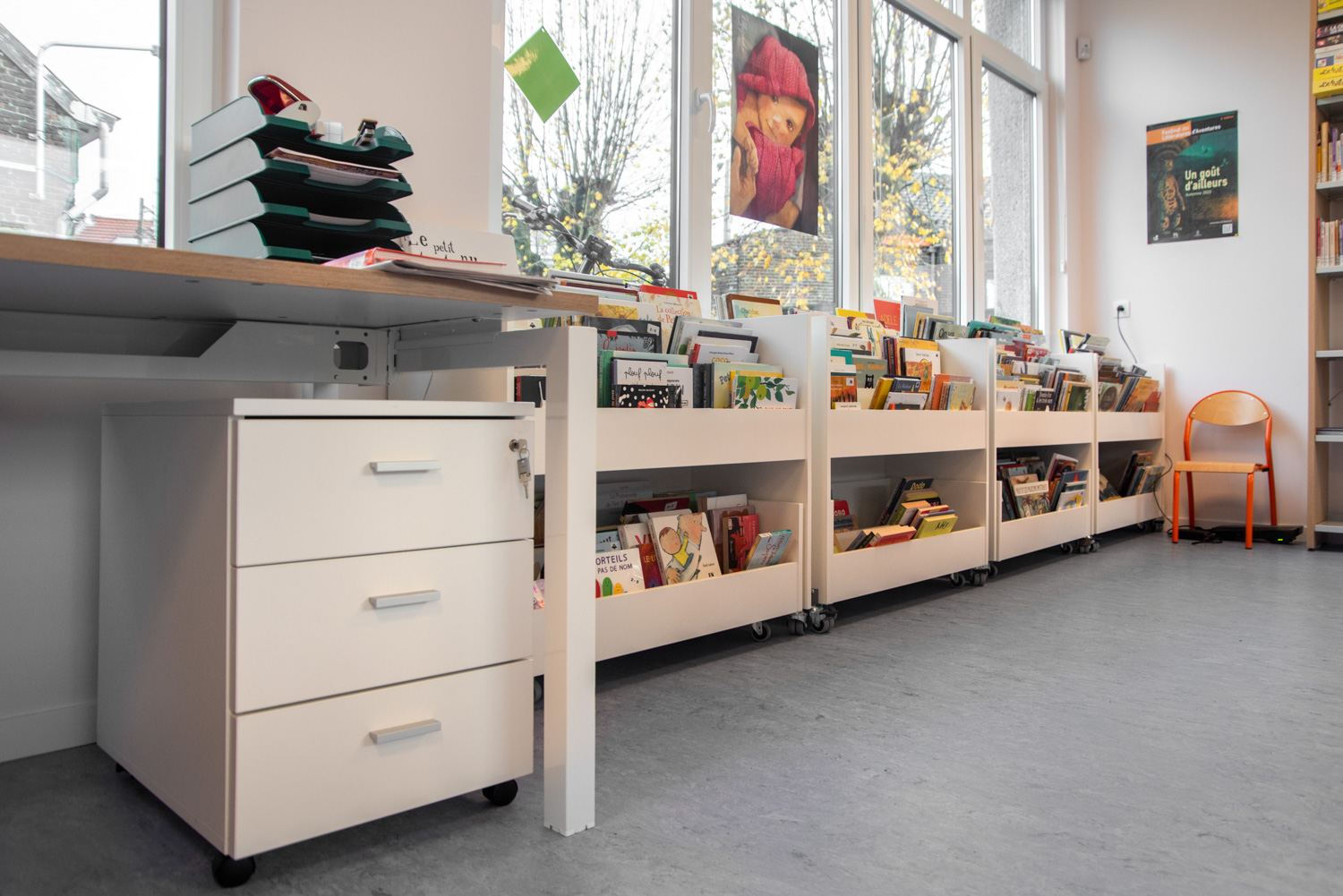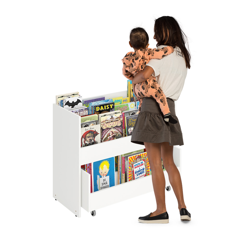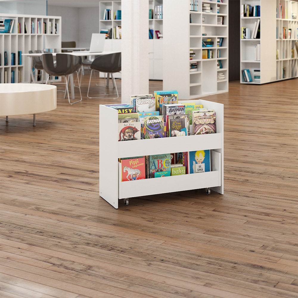 Grooved rubber mats in the top compartments ensure that even a small number of books will stay upright.