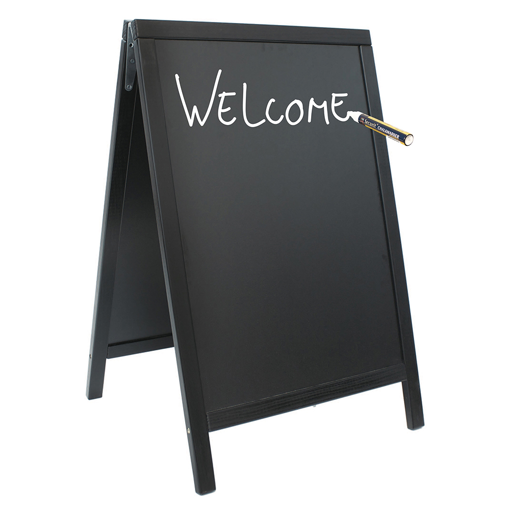 Chalk pens can be used and are easily erased with a wet sponge or cloth.