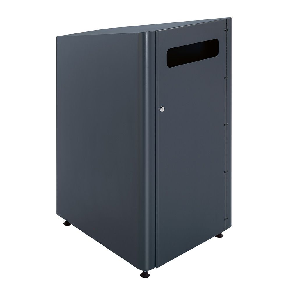 Lockable cabinet equipped with an anti-theft fitting at the bottom. Supplied with basket on wheels and icon signs for books and CDs/DVDs.