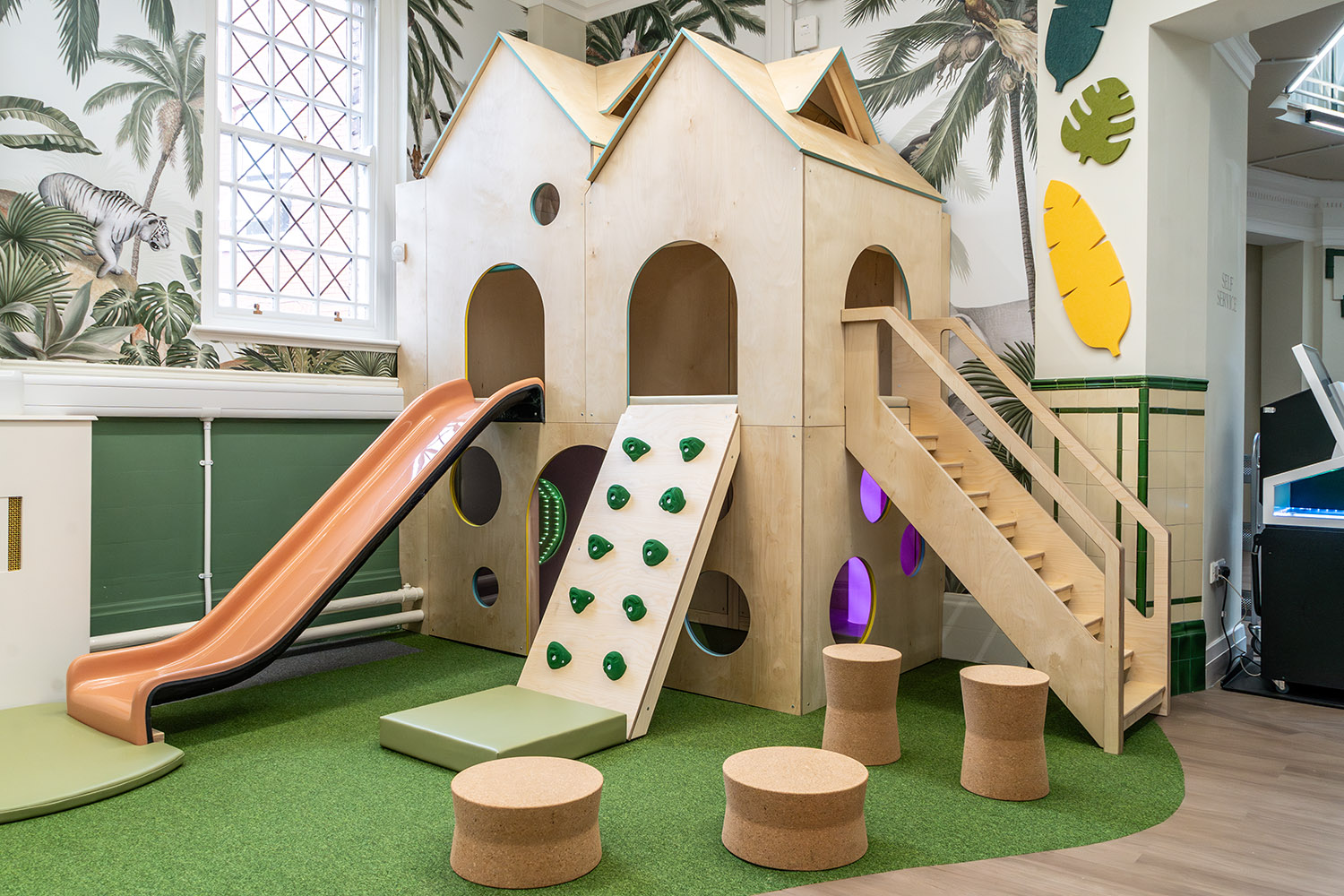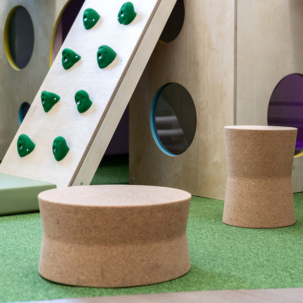 Cork is easy to clean, sound-absorbing, and fire-retardant, making it perfect for public spaces and especially children's environments.