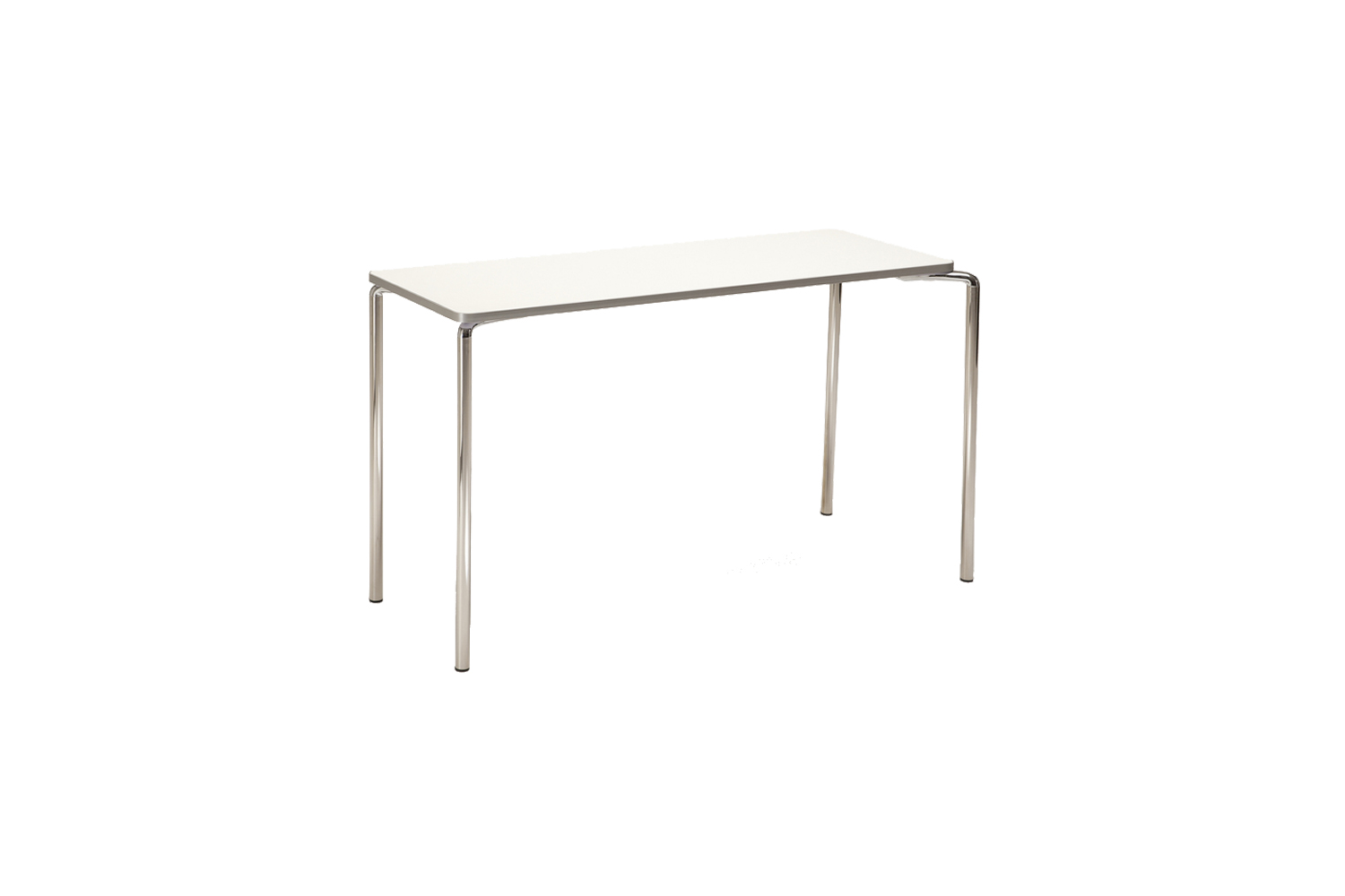Material 19 mm white HPL laminate. Grey side list. Base in polished stainless steel. Plastic gliders.