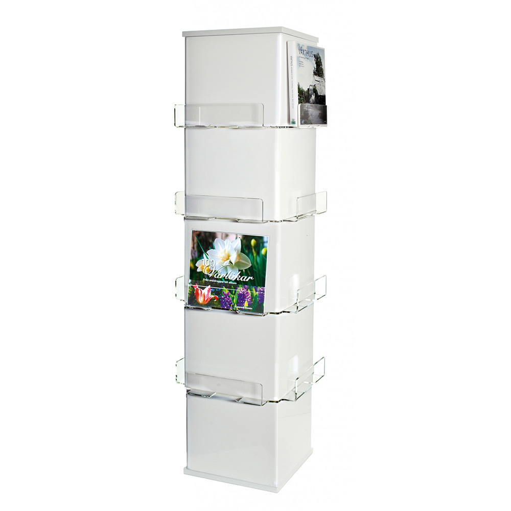 Smart display and exhibition tower for front-facing display of books, magazines and exhibited objects.