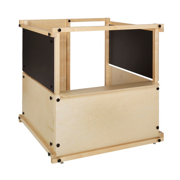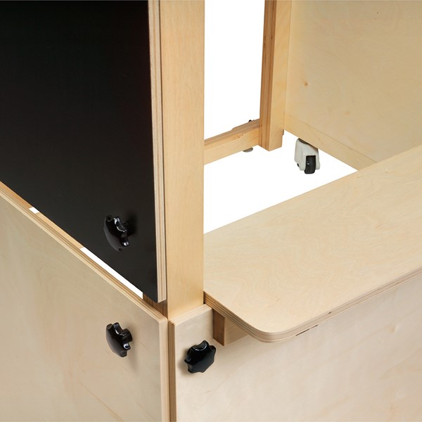 Cubik is a versatile system for creating spaces. It consists of a framework and wall elements made of plywood and of black laminate with writing/magnet function.