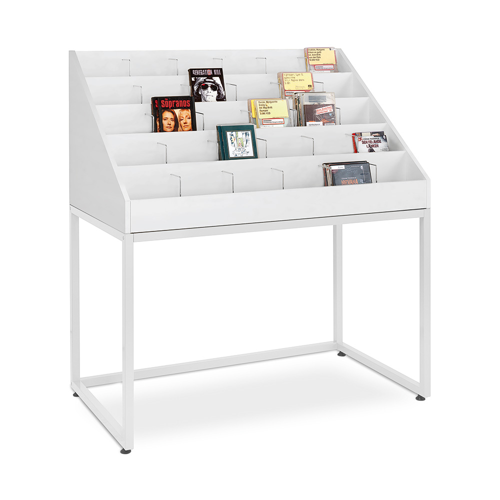 Equipped with 5 tiers, each with 6 roomy compartments for CD's and DVD's with excellent visibility and accessibility.