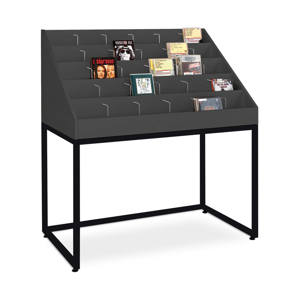 Equipped with 5 tiers, each with 6 roomy compartments for CD's and DVD's with excellent visibility and accessibility.