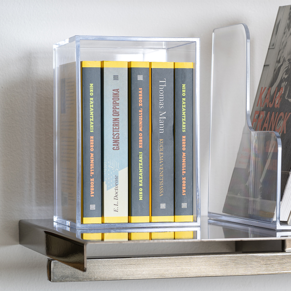One box, two uses - use with the opening at the top and fill with different themed products or giveaways. Turn it around and place opening at the bottom and use it as a platform to display brochures, books, journals and magazines on top.