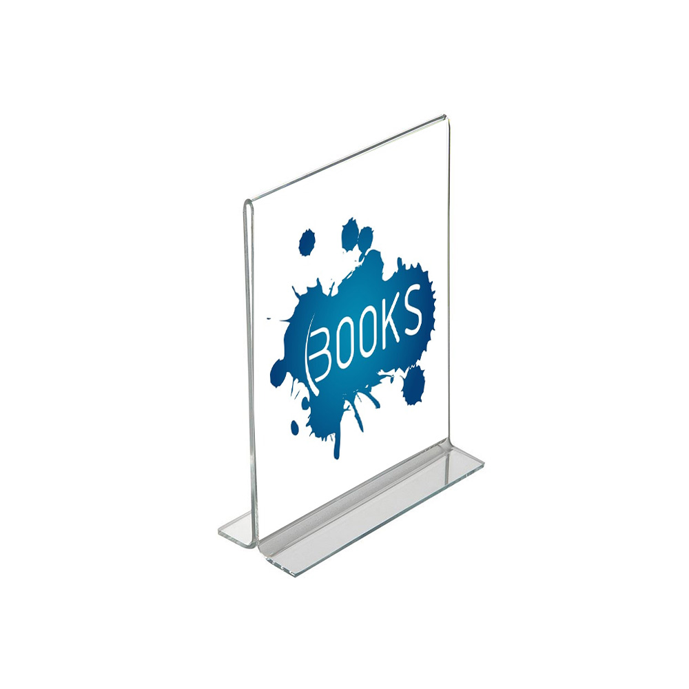 Practical double-sided stands for signs and information for tables, countertops, shelves, window displays, etc..