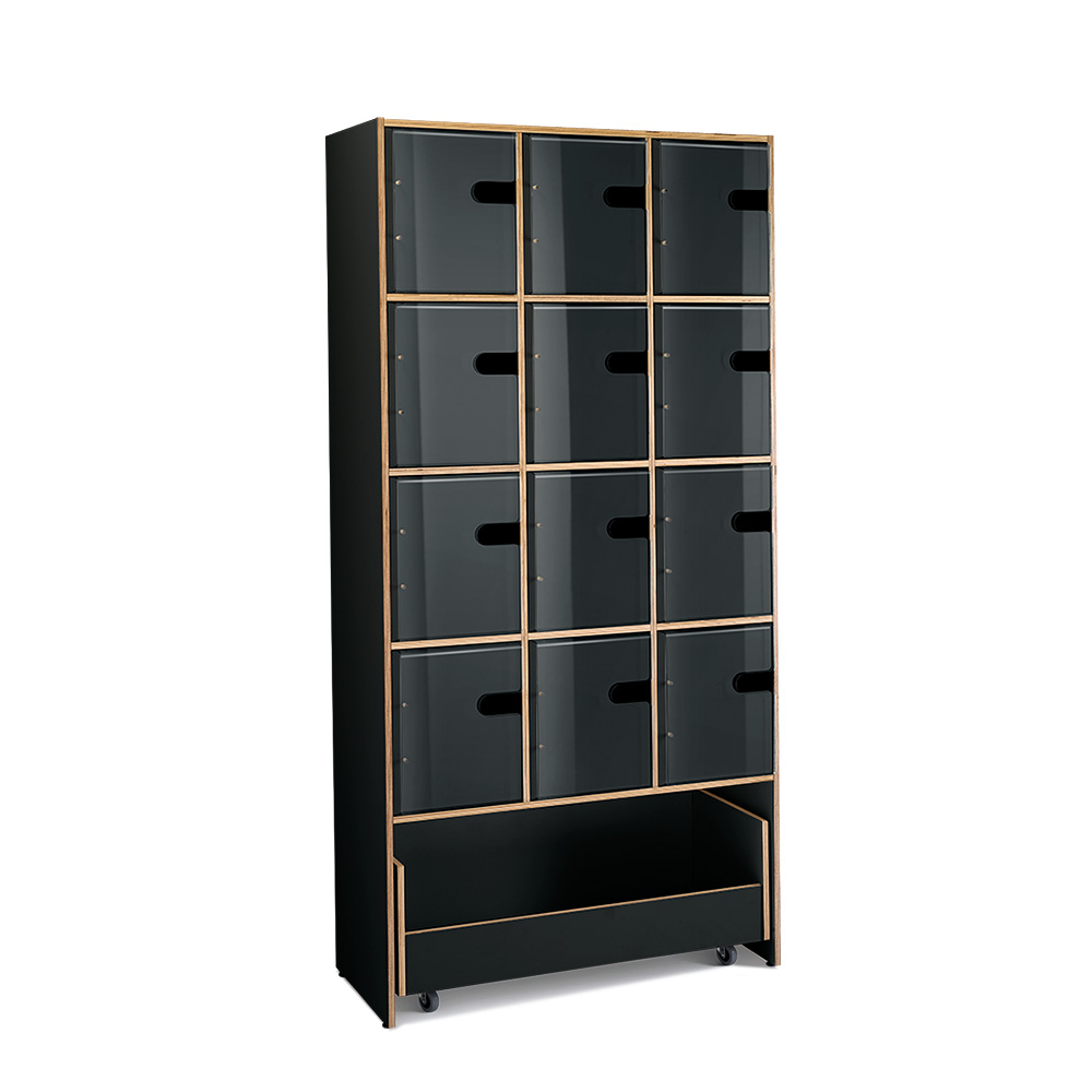 Supplied with rubber mat, which keeps medias upright and prevents them from sliding, and space for A4 vertical storage.