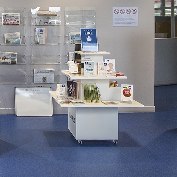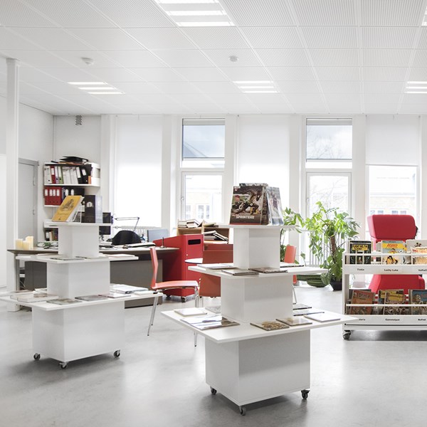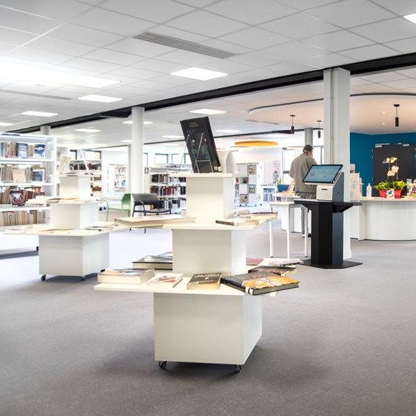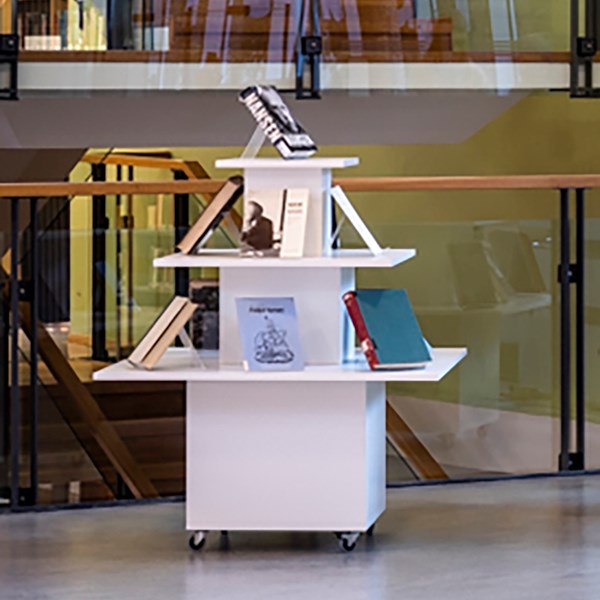 Functional, versatile podium for display of books and/or other media. Ideal as an eye-catcher at the entrance or other focal areas in you library.