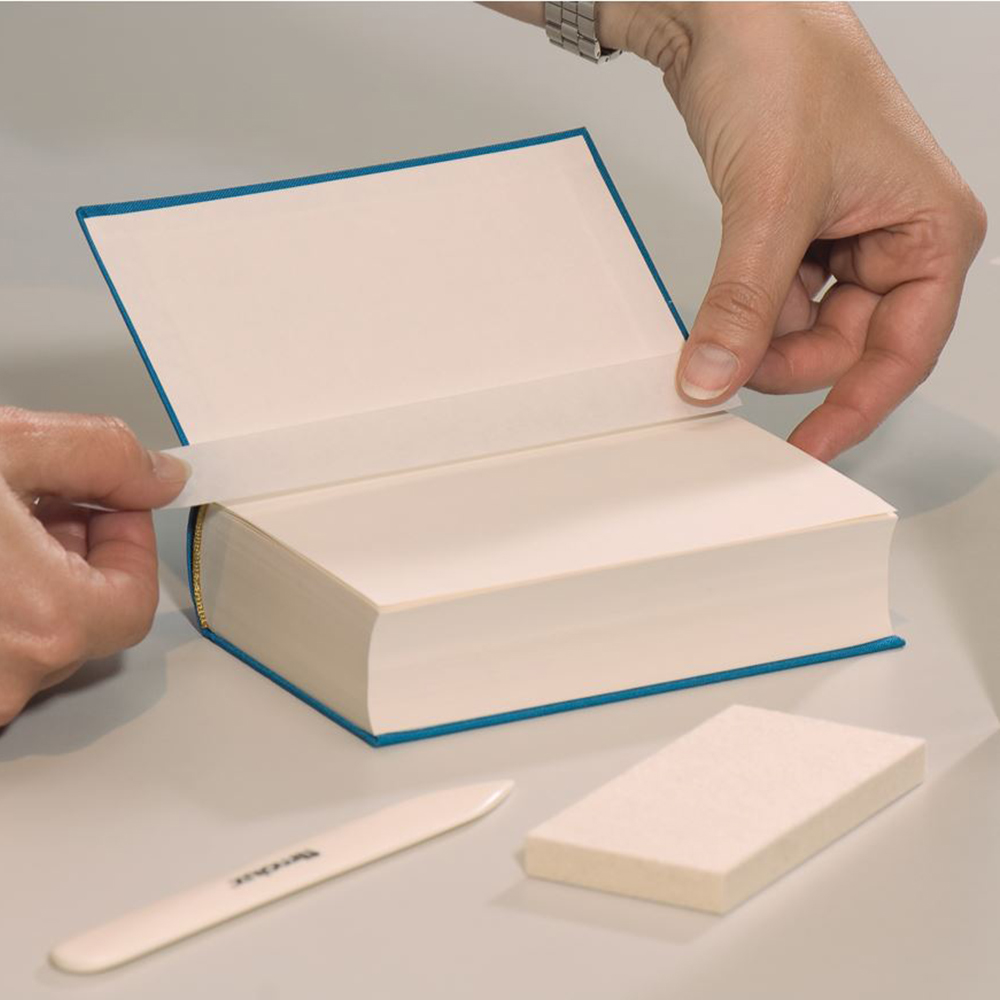 Wood-free, tear-resistant special paper. High softness, hardly visible, prevents bruising of original document.
