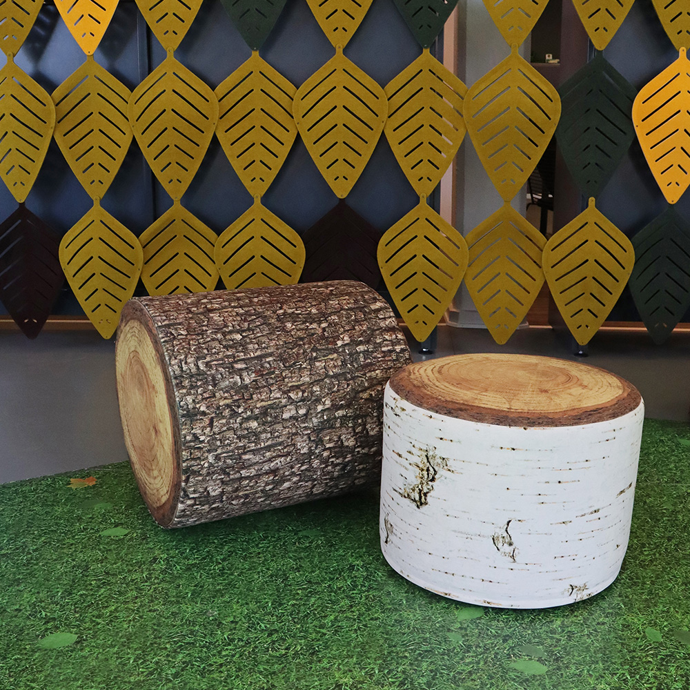 The poufs are upholstered with a thick velvety soft fabric with photo-realistic digital print with an amazing 3D effect for nature inspired environments.