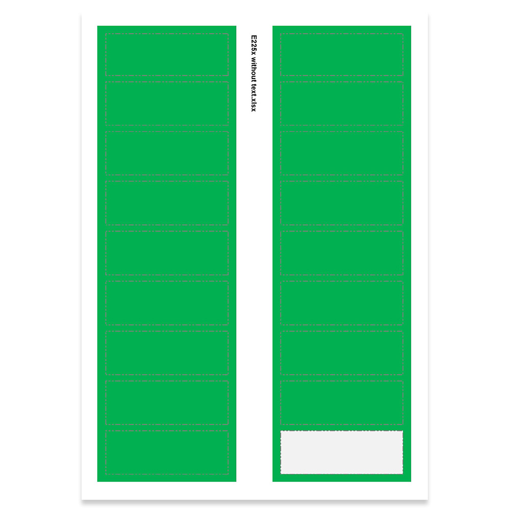 Self-adhesive, die-cut labels on sheets with optional text, e.g. for a classification system.