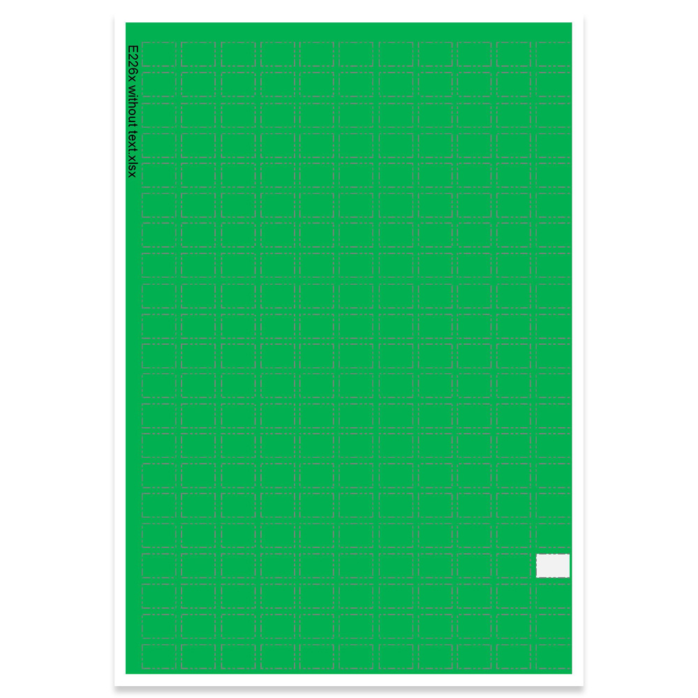 Self-adhesive, die-cut labels on sheets with optional text, e.g. for a classification system.