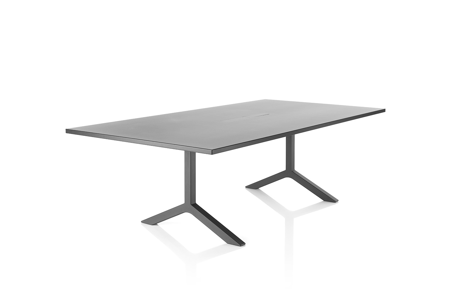 With its simple, functional and robust design, the Funk table collection creates an ideal workspace for studies and meetings, supporting a productive and inspiring learning atmosphere. The table is available in two sizes and four heights, featuring either a T-leg base or a four-legged star support. The base is solidly constructed in powder-coated or polished cast recycled aluminium.