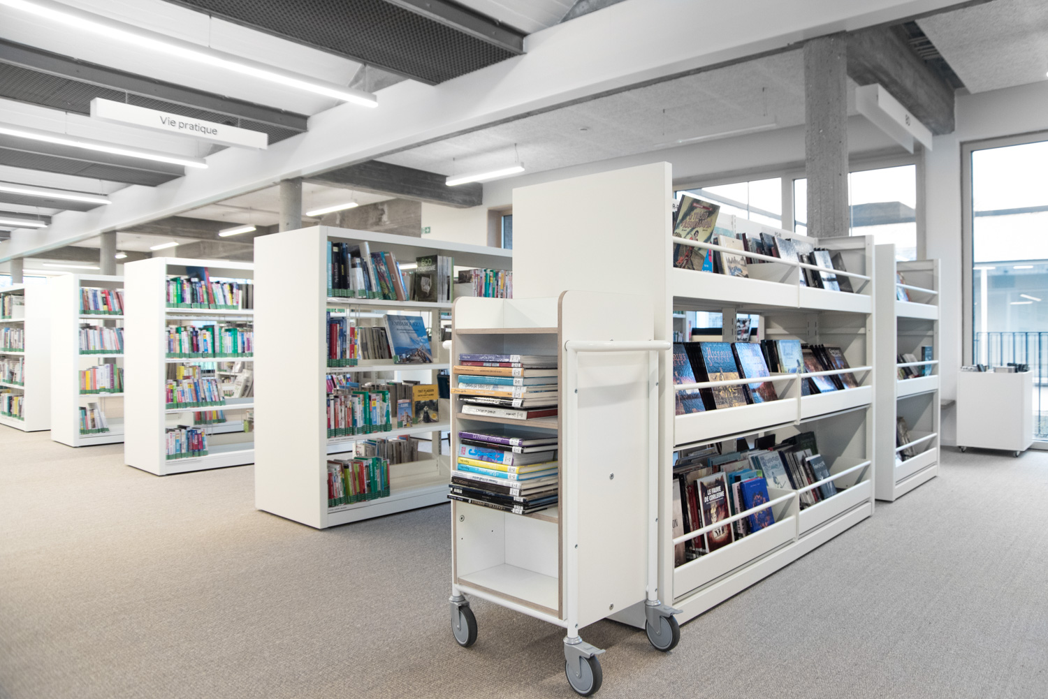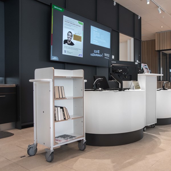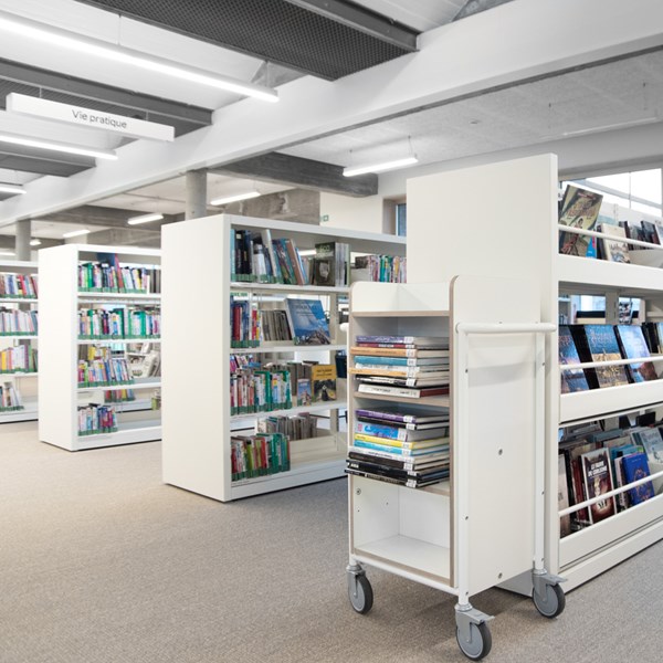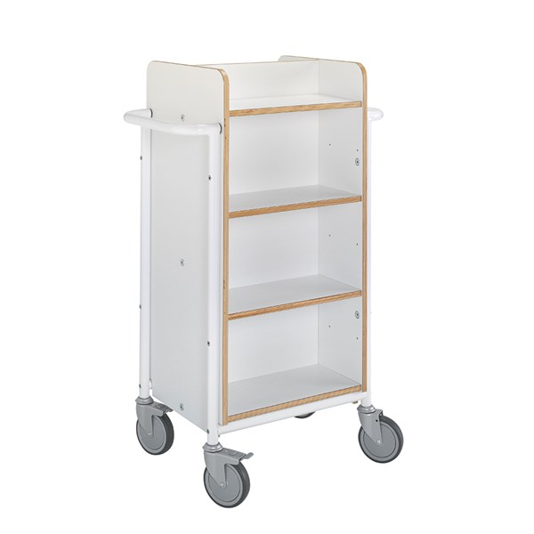 This book trolley can be used as a mini shelving system that can be moved around in the library where needed.