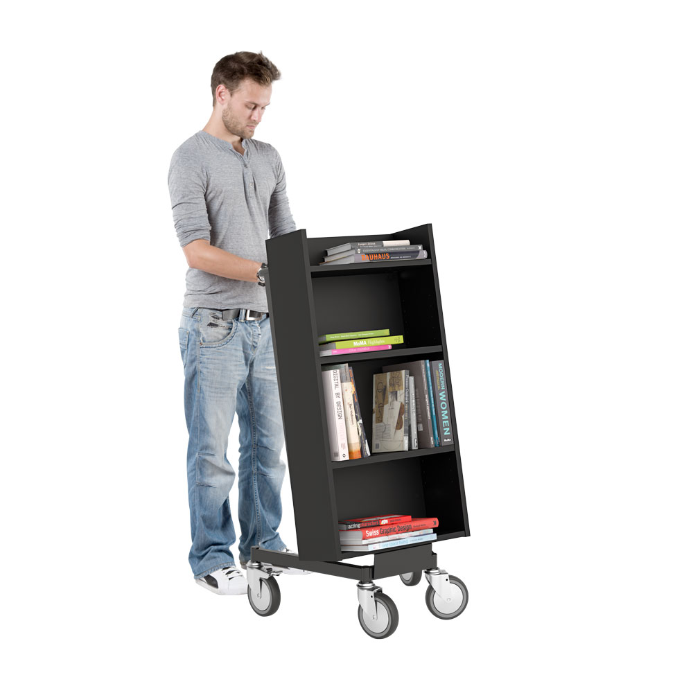 The angle of the book trolley ensures safe media storage and also provide a good overview of the books you want to handle.
