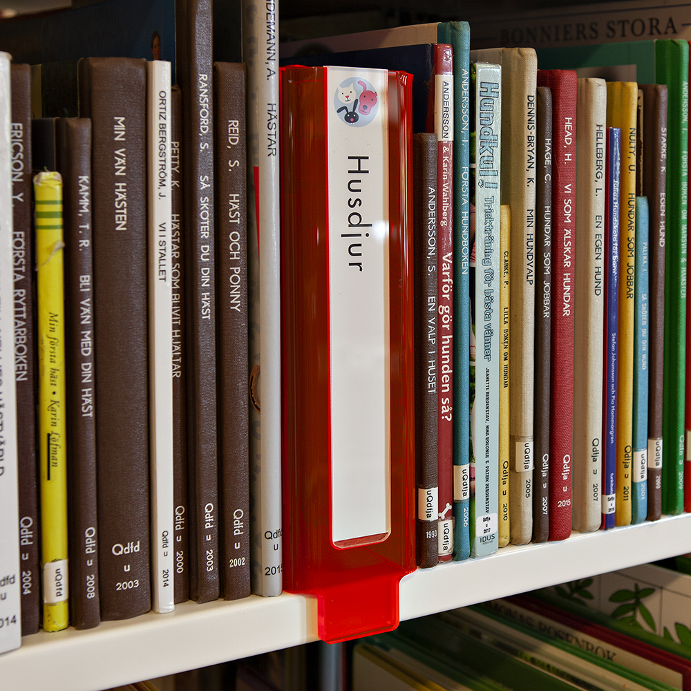 On-shelf guider manufactured in a high quality glass look or fluorescent neon acrylic.