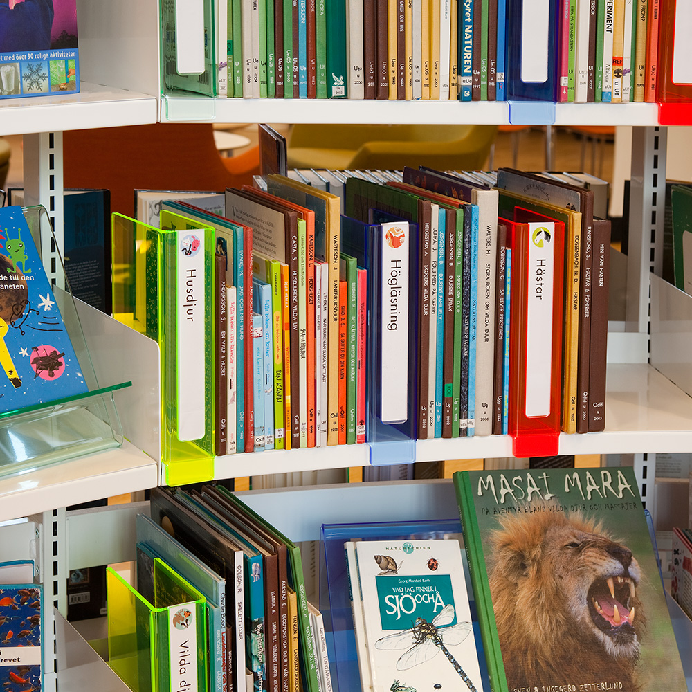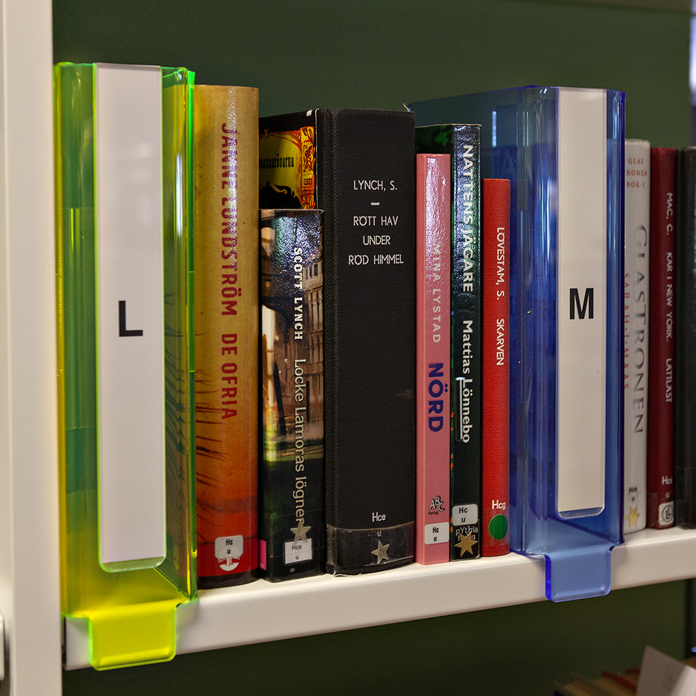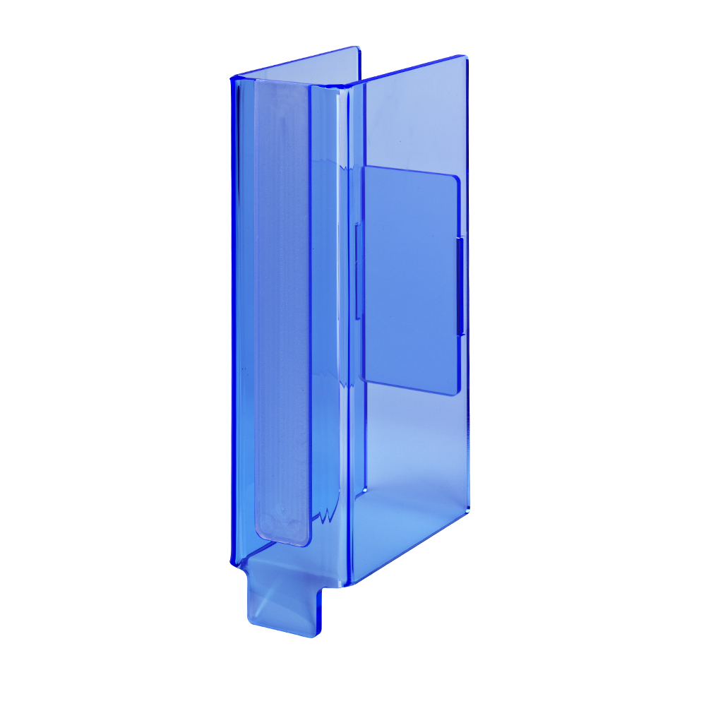 On-shelf guider manufactured in a high quality glass look or fluorescent neon acrylic.