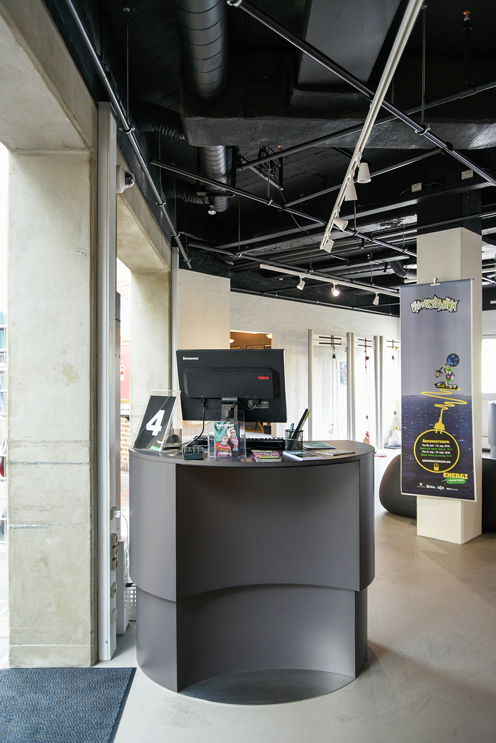 The height adjustability (electric) meets many health and safety guidelines and the recessed front with increased accessibility allows the visitor to come closer regardless of whether he/she uses a wheel chair (low position) or a rollator (high position).
