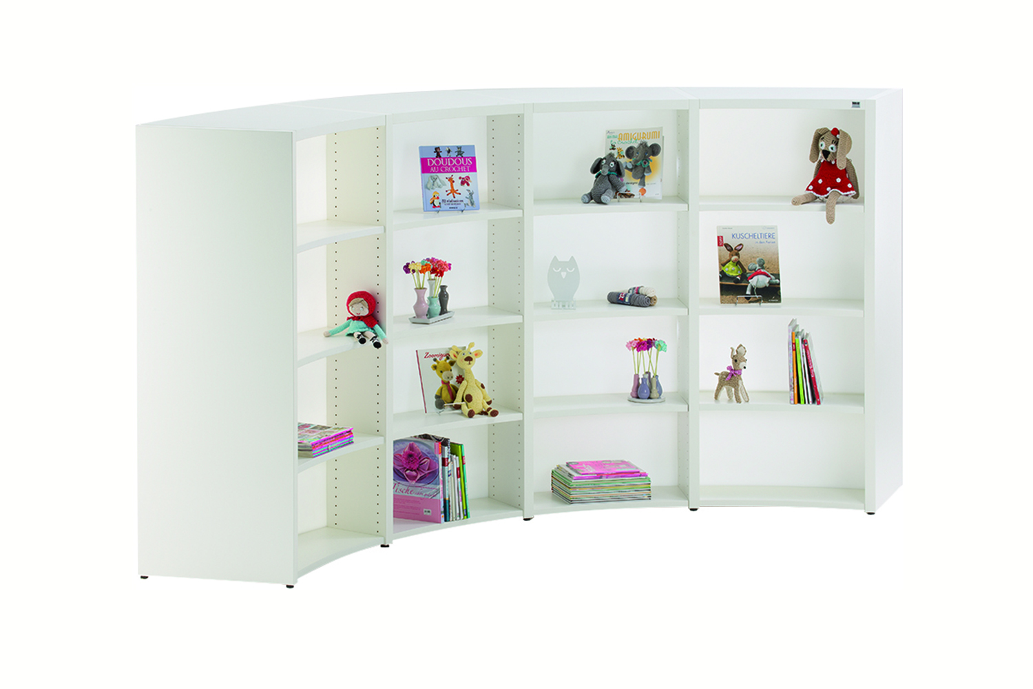 The double-sided Inform Round shelving system is available in three heights with adjustable feet and in two heights with castors. The design of the shelving system allows for easy assembly and adjustment without the use of specific tools.