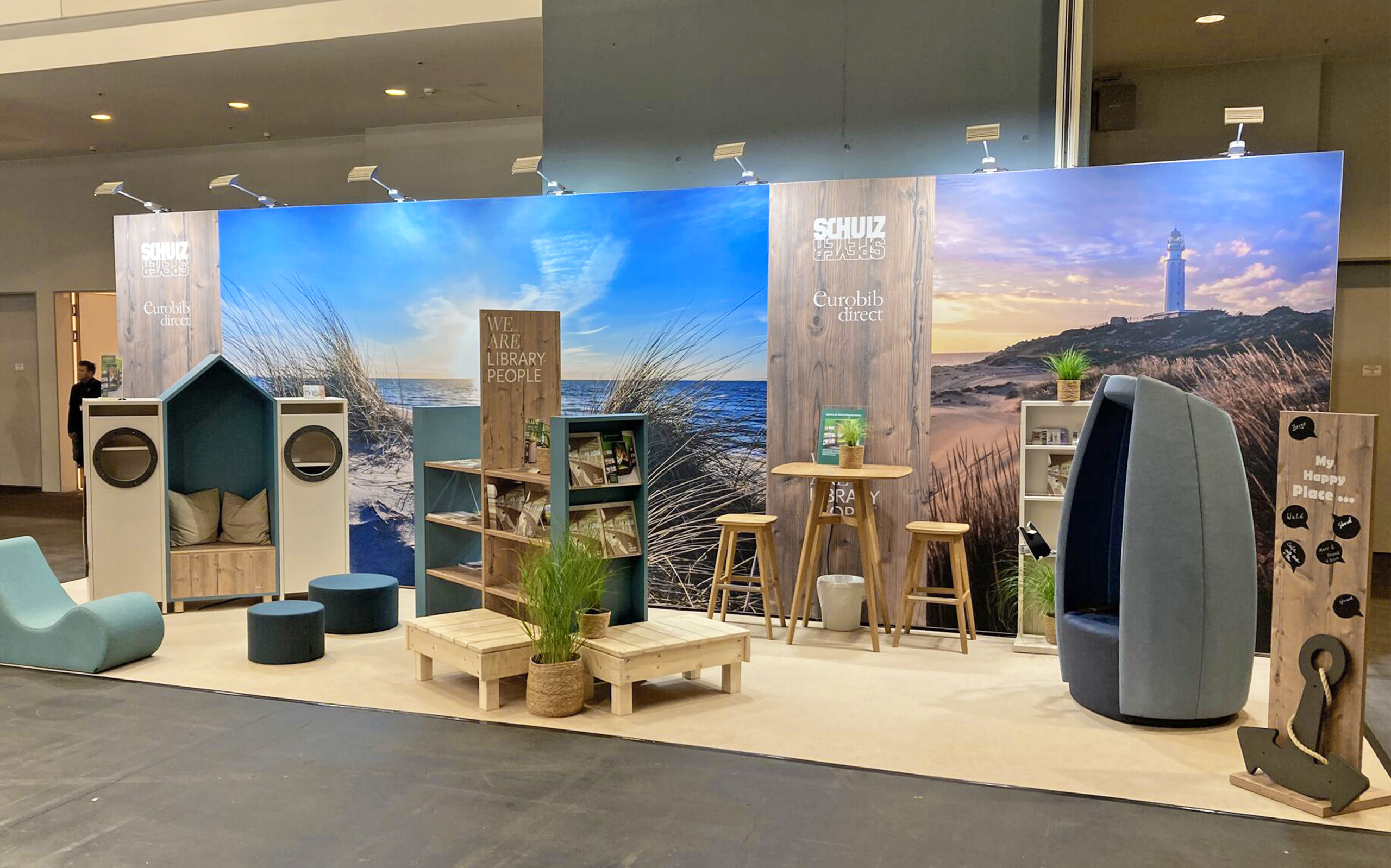 As we delved into the intricacies of designing our stand for BiblioCon, our focus shifted towards translating our thematic vision into tangible elements that captivate the senses and ignite the imagination. We also had to adhere to the economic framework for the exhibition, just as our design projects are based on a specific budget. With biophilic library design as our guiding principle and the serene beauty of the beach and Nordic shores as our inspiration, we carved out distinct zones that catered to the diverse needs and interests of our visitors.