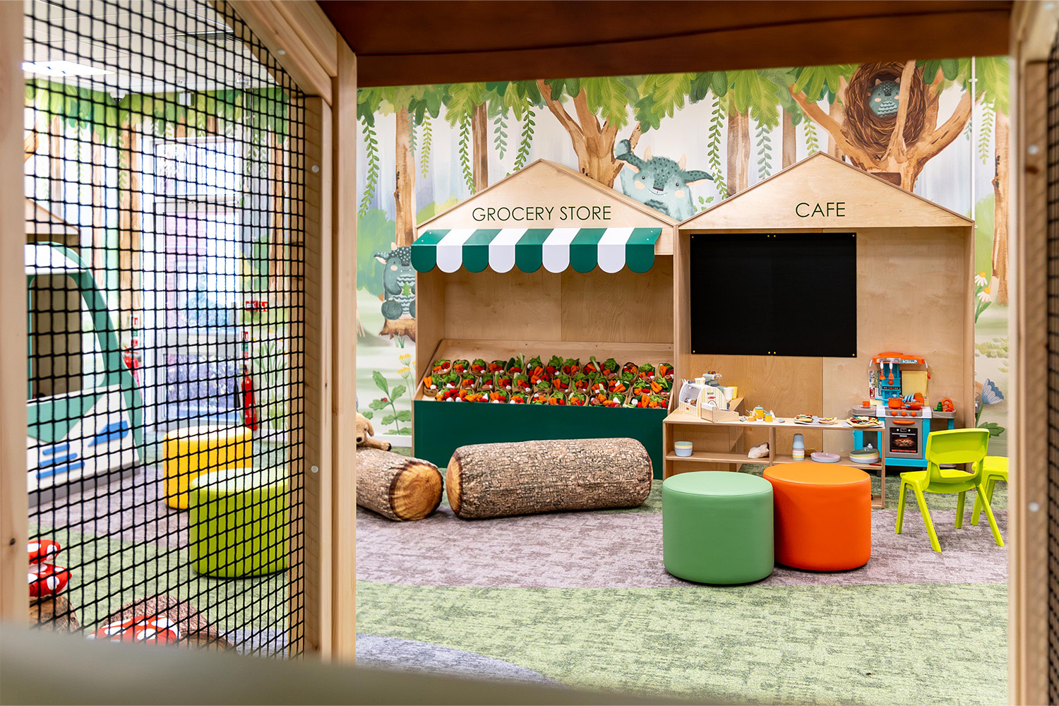 From climbing through the treehouse and peering through its windows, to boarding the bespoke animal rescue bus or building in the repair shop, the forest-themed setting offers something for everyone. Whether exploring structures or enjoying the soft play area, the space blends entertainment with education seamlessly.
