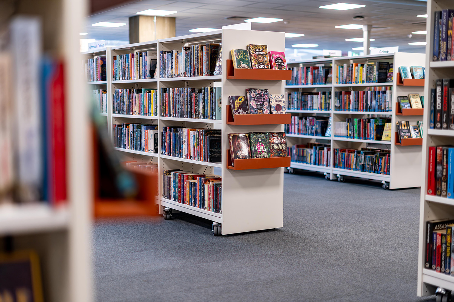 Three key areas formed the focus of the refurbishment: the ground floor, the imagination space, and the literacy centre. Throughout these zones, essential design elements such as colour detailing, wayfinding signage, graphics, and biophilic features were introduced to create a warm, welcoming atmosphere. The transformation begins with the books themselves, showcased using the Lingo Shelving System with open fillet connections and timber display ends, reinforcing a sense of freshness and renewal. The new shelving also accommodates an additional 3,000 titles, significantly expanding the existing collection.