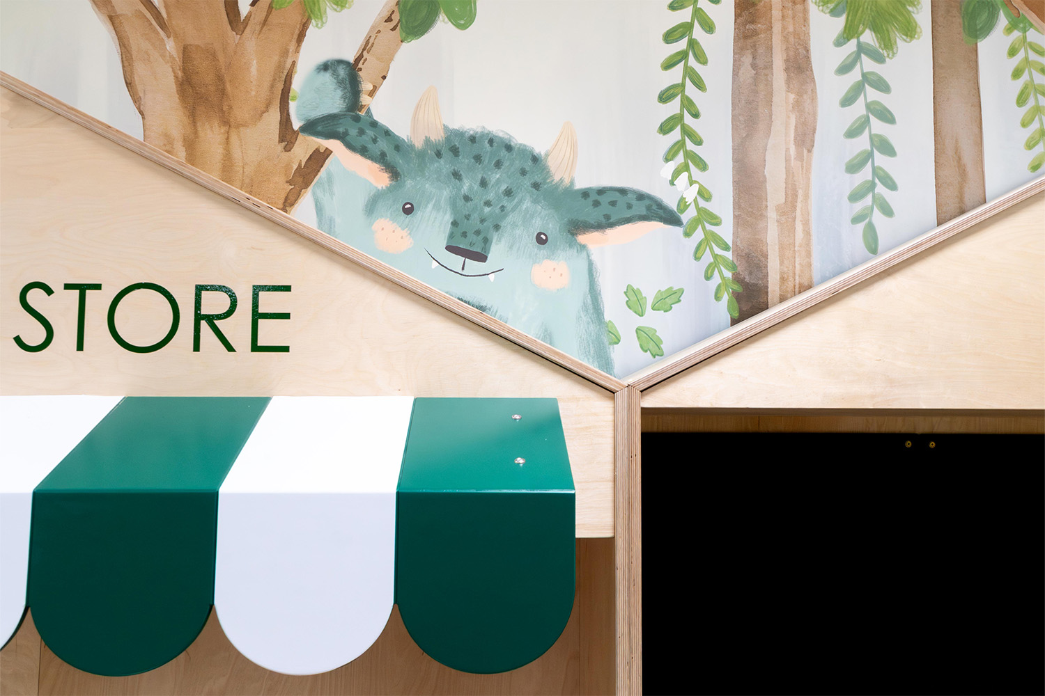This engaging environment features a range of interactive elements designed to stimulate curiosity and learning, including fibre optic strands for tactile interaction and projected games for visual engagement. A playful shopfront encourages children of all ages to develop early mathematical and communication skills through imaginative play.