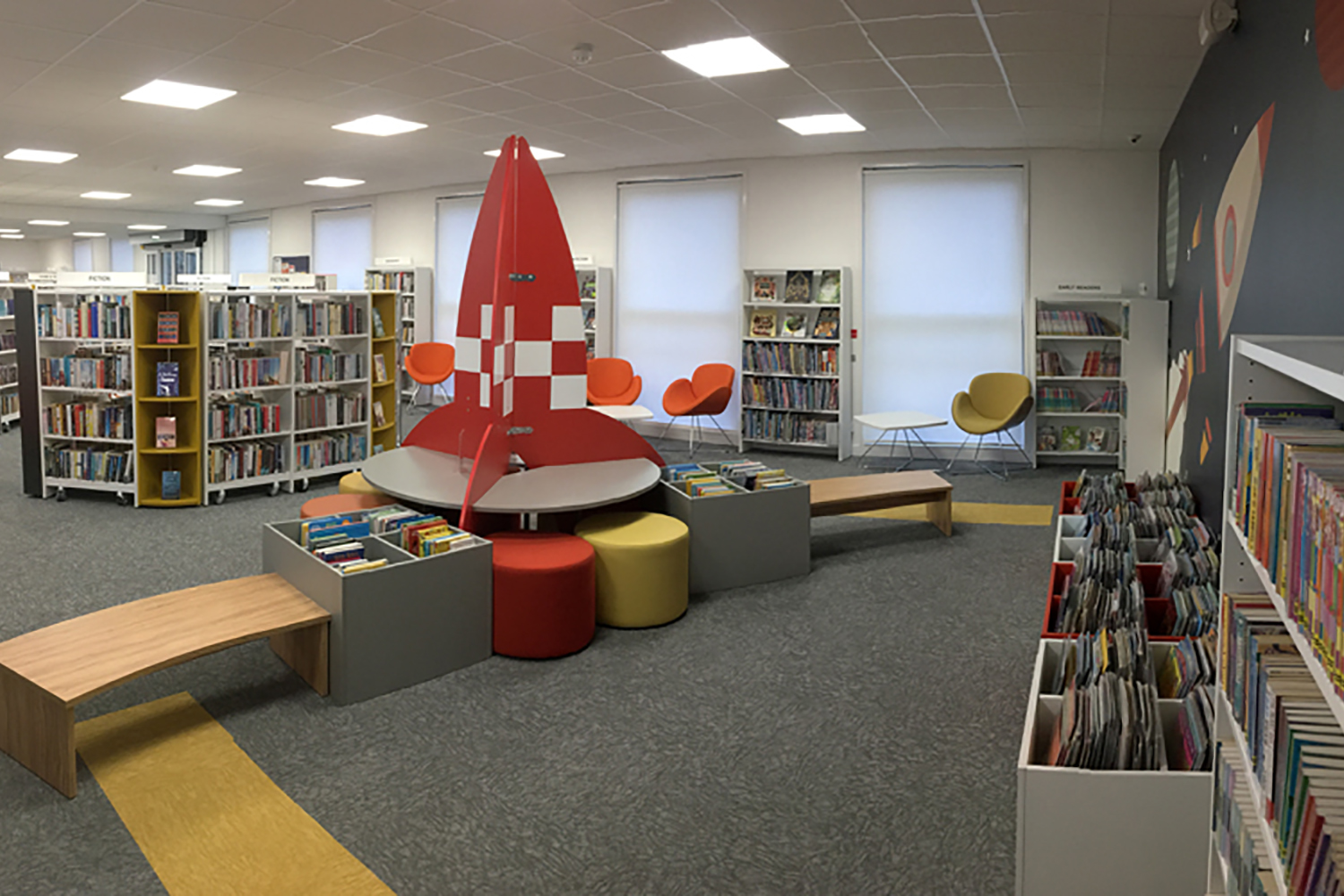 “Thank you for the fabulous design and furniture you have installed at Newport Pagnell Library. We started to put all the books back on the shelves yesterday and all the library staff who helped said how brilliant the library now looked and that it had the wow factor – in particular the rocket and wall art in the children’s library.”
