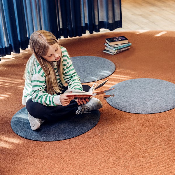 Durable, pressure relieving, felt floor cushion with non-slip bottom that reduces acoustics in the children's area and encourages learning and play.
