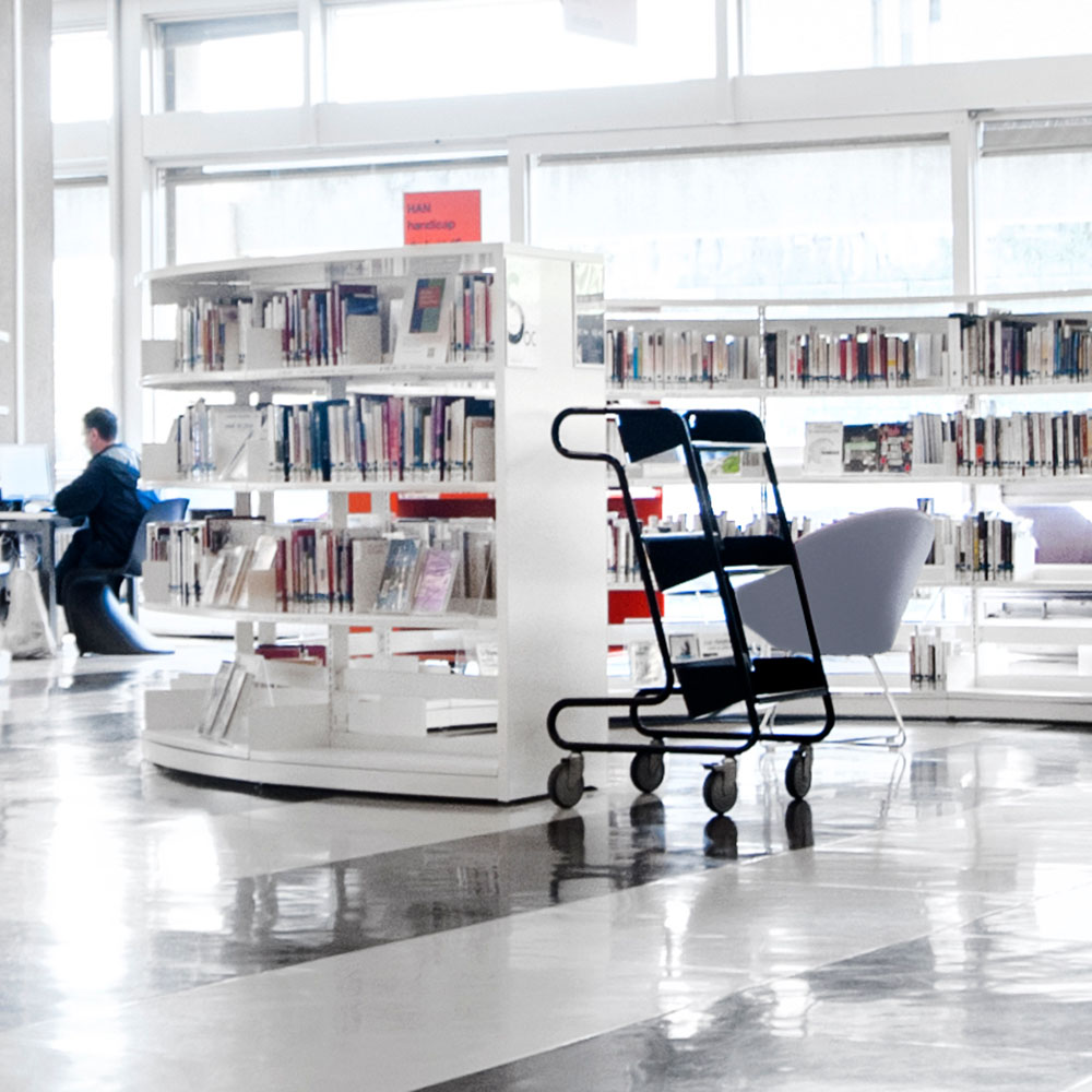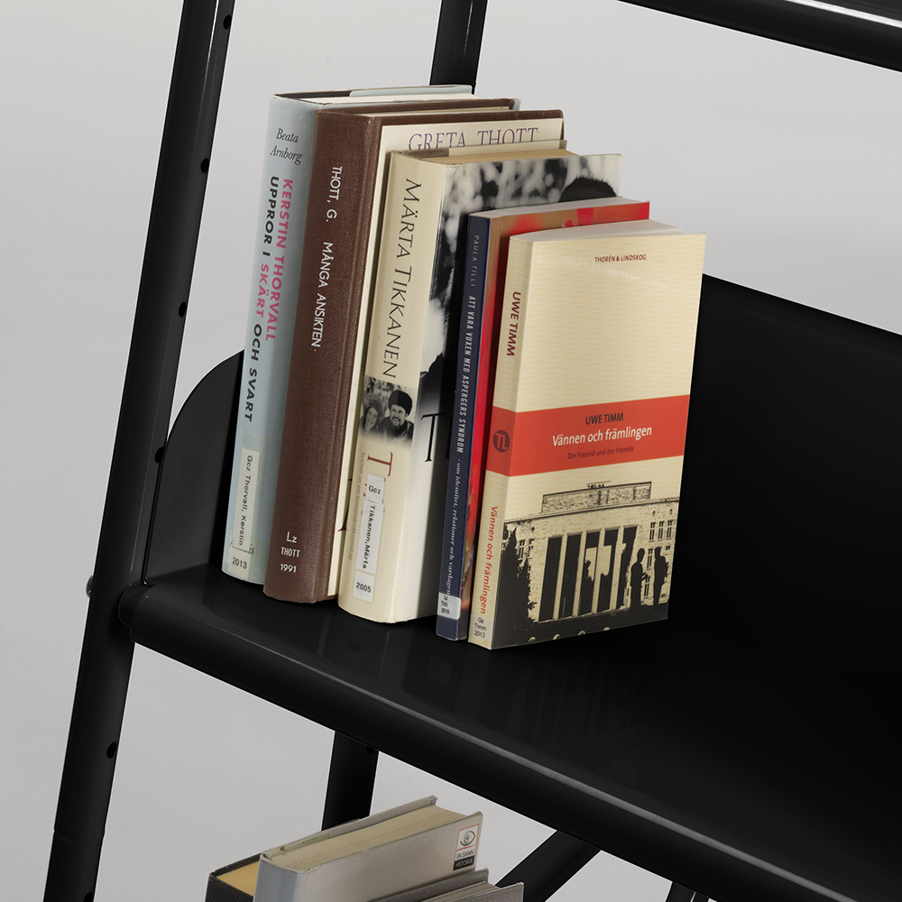 The angle of the trolley ensures safe media storage and also provide a good overview of the books you want to handle.