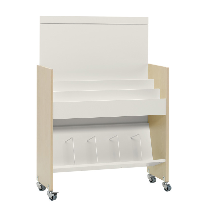 Set back panel either at a low or high position. When mounted in the high position, the slot in the back panel can accommodate display and sign holders.