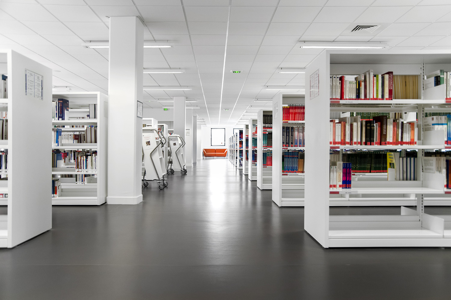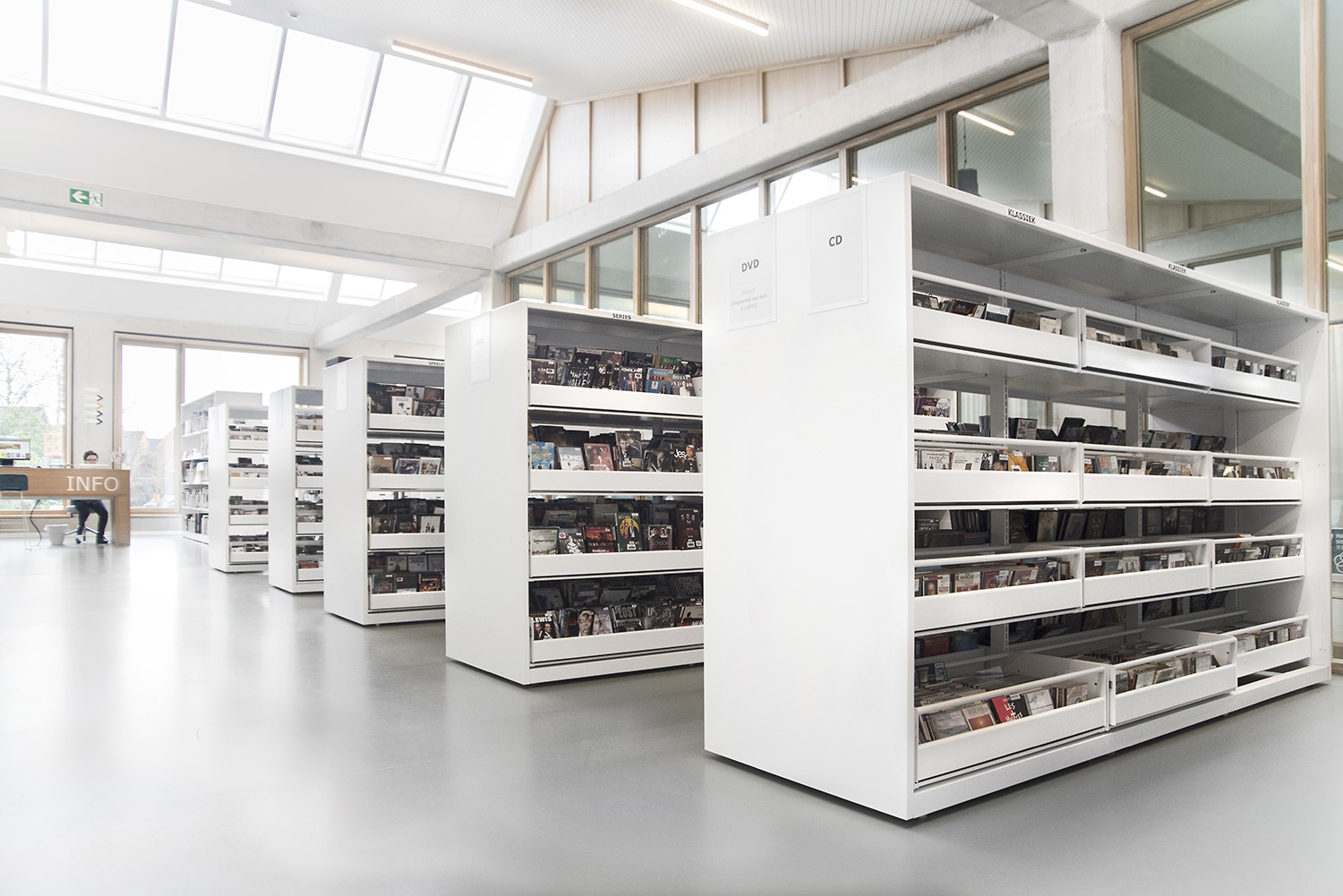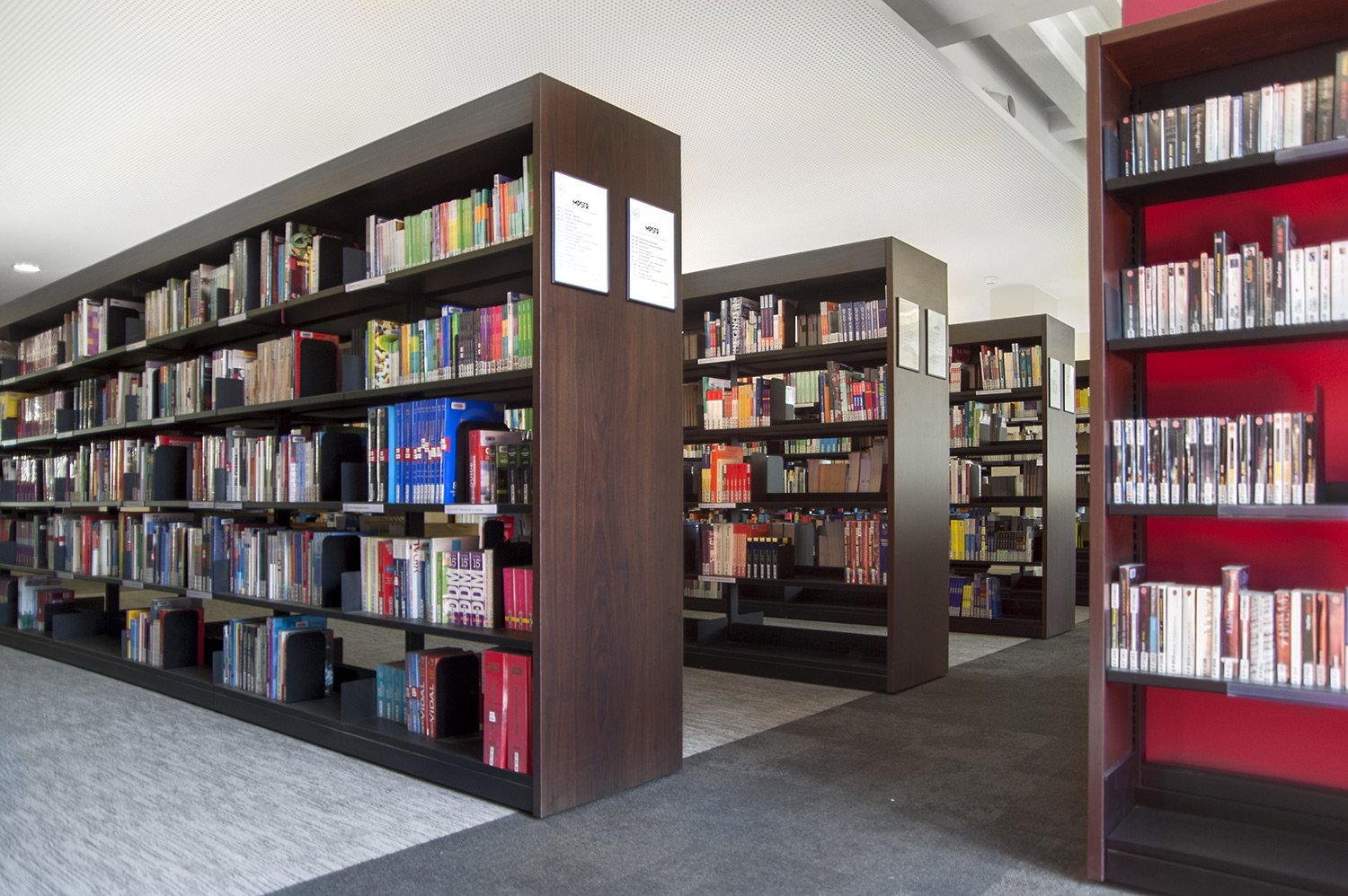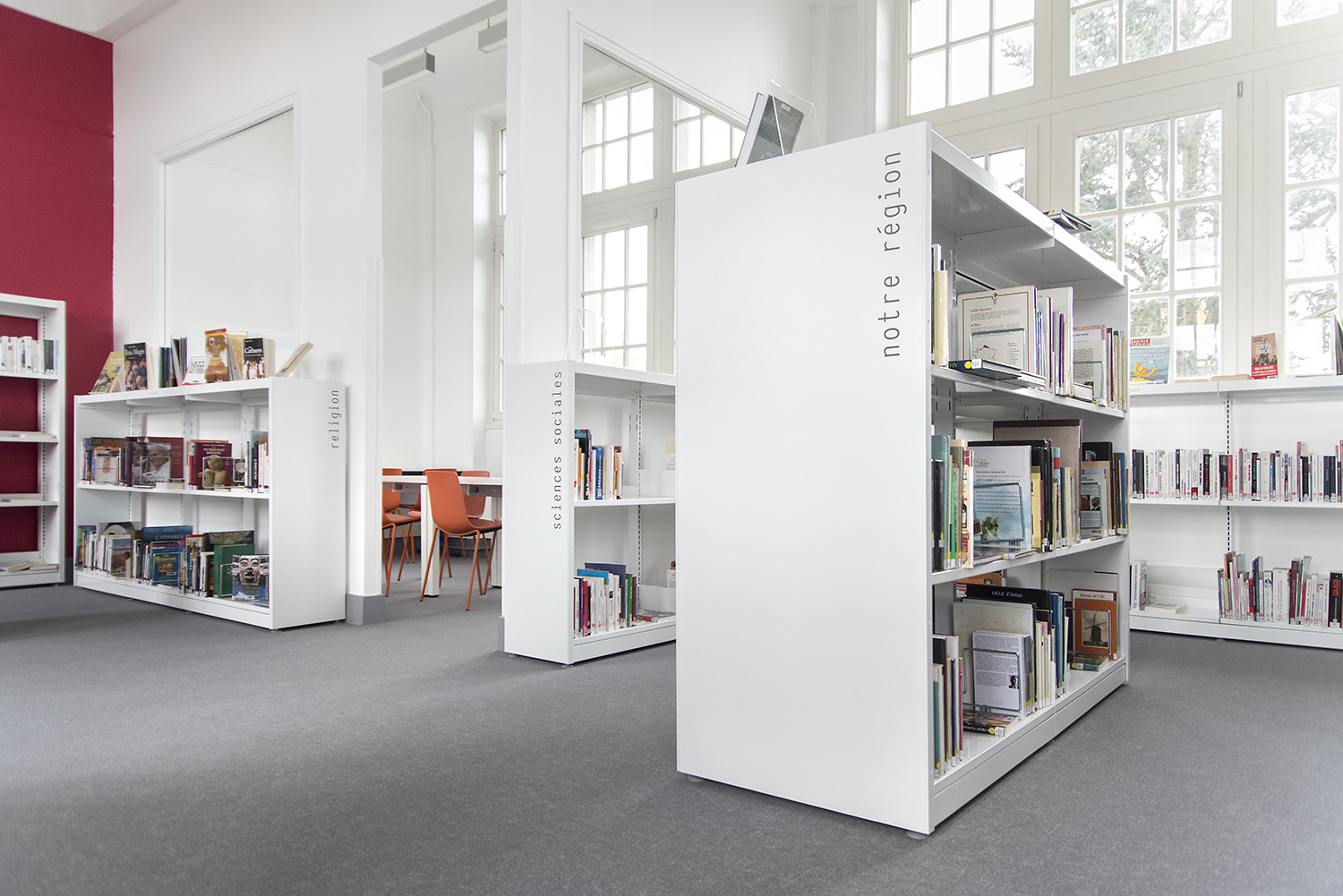The London concept which consists of end panels and top shelves is designed to create a frame around the series of 60/30 steel shelving bays. The concept is available in wood and steel.