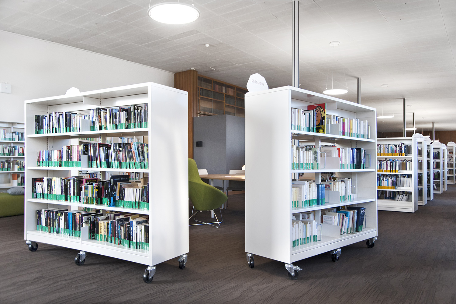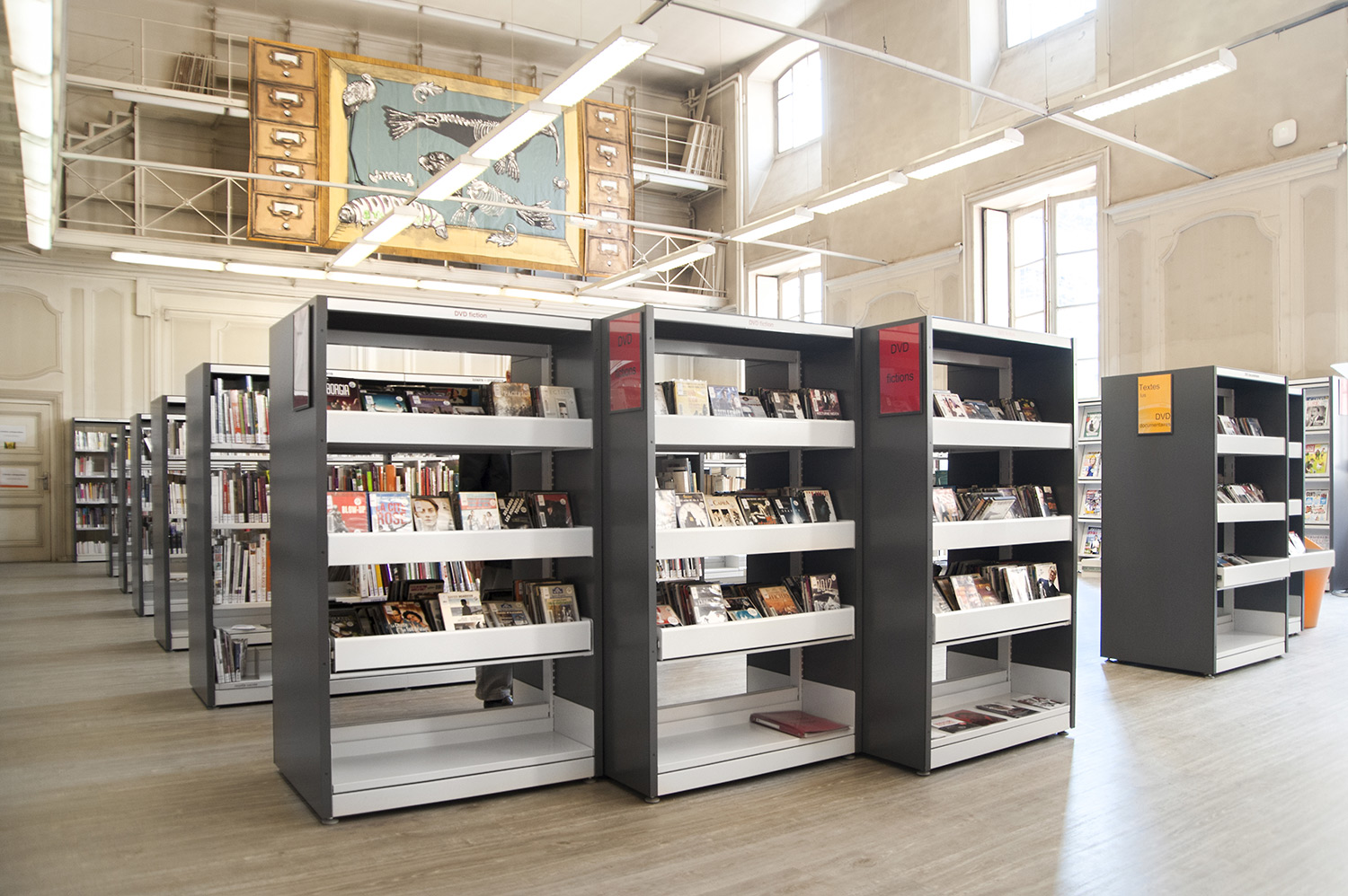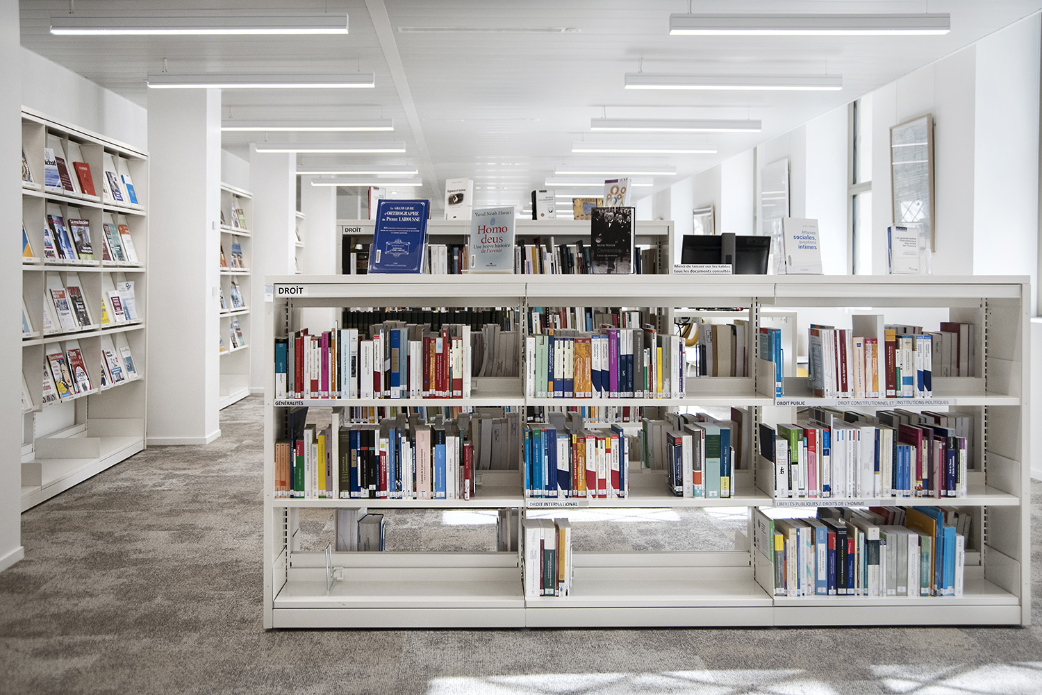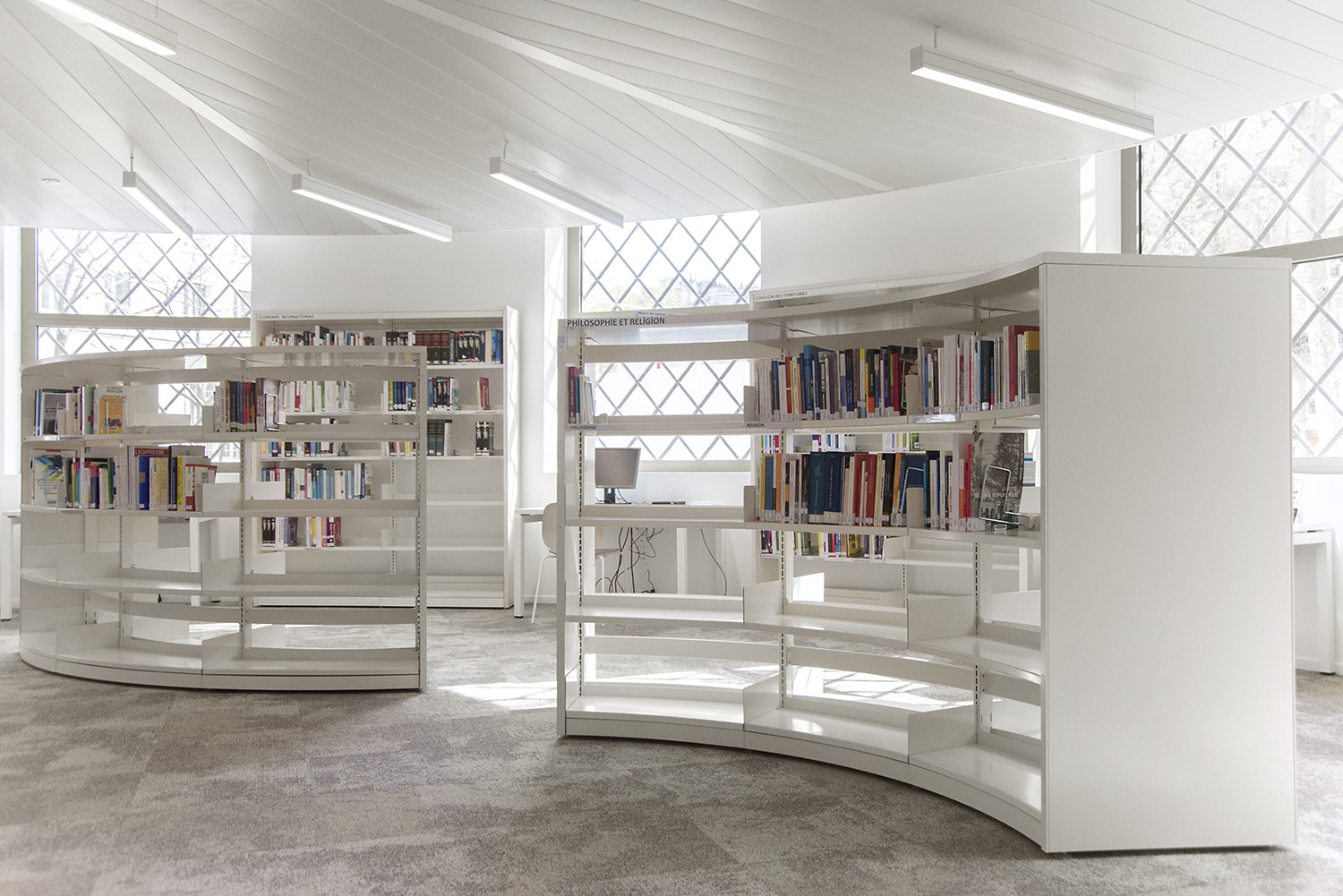 The London concept which consists of end panels and top shelves is designed to create a frame around the series of 60/30 steel shelving bays. The concept is available in wood and steel.