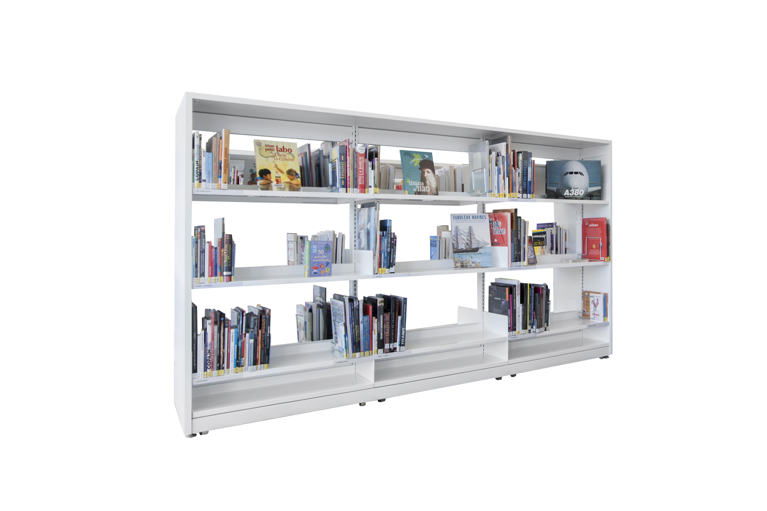 London wooden end panels and top shelves are available in 30 mm MDF painted in any colour. The wooden top shelf is available for 1, 2 or 3 bays. A flat aluminium profile is attached on the front of the end panel for protection. The aluminium profile is painted in the specified colour. An optional steel plinth can be added below the bottom shelf and will support the framed look.