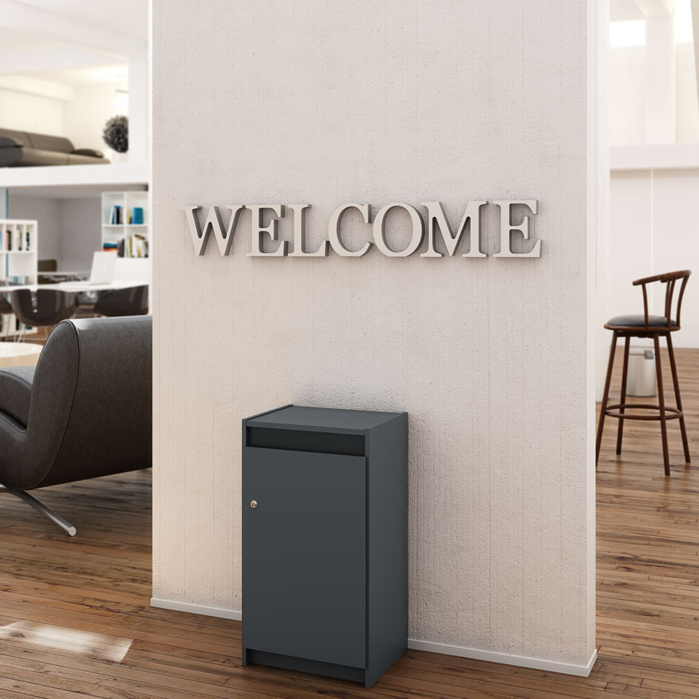 Lockable book return cabinet with foam (40 mm thick) on the bottom for protection of books.