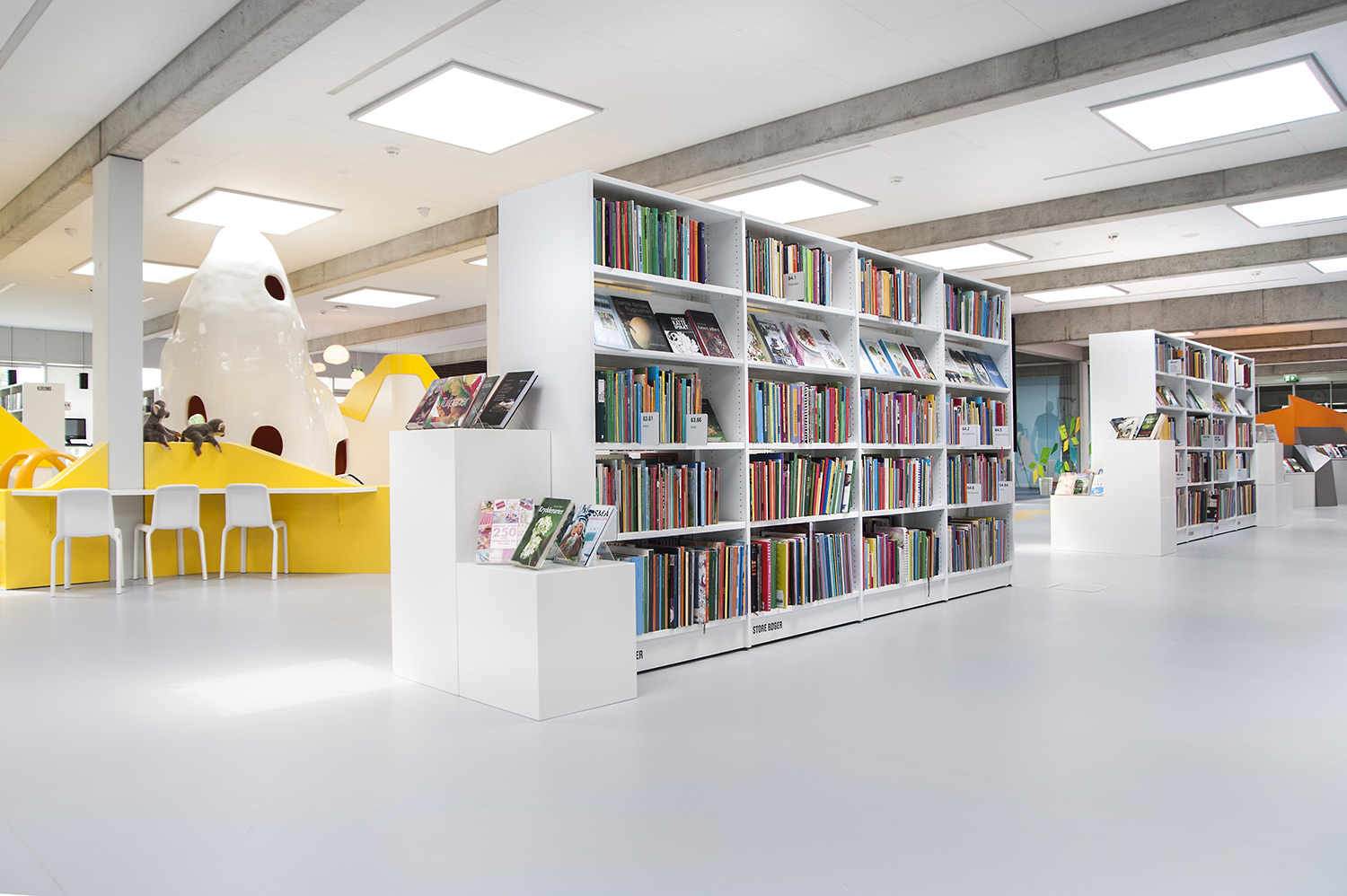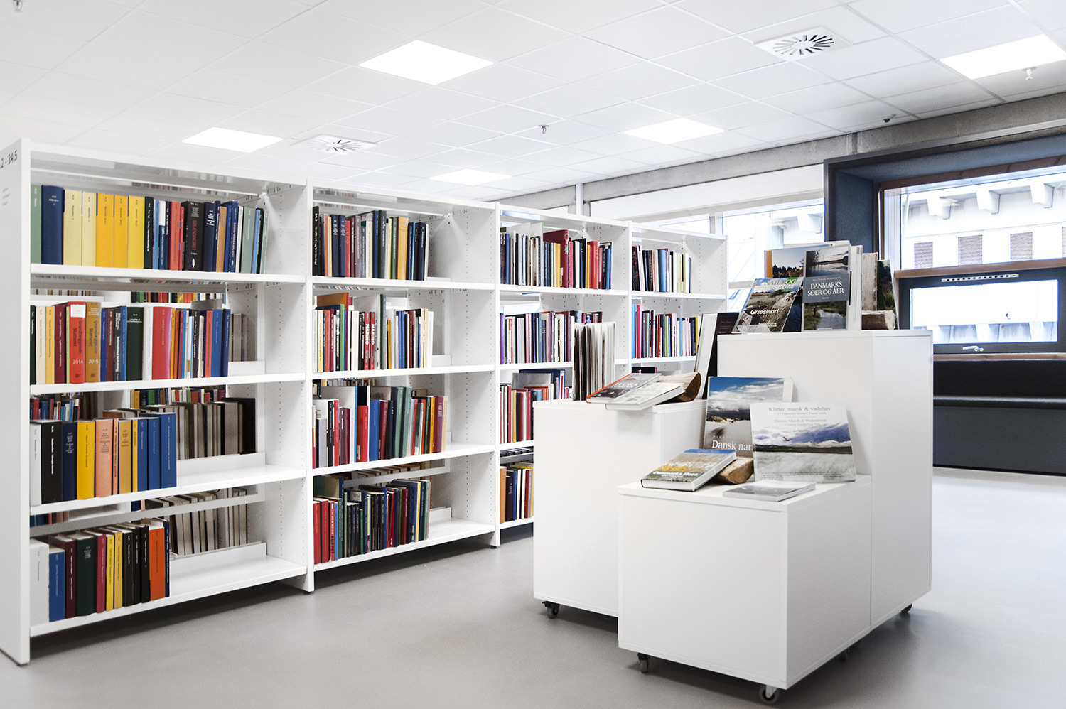 Perfect for creating small and large islands in the library. The simplistic shape fits well in most places and makes the books stand out.