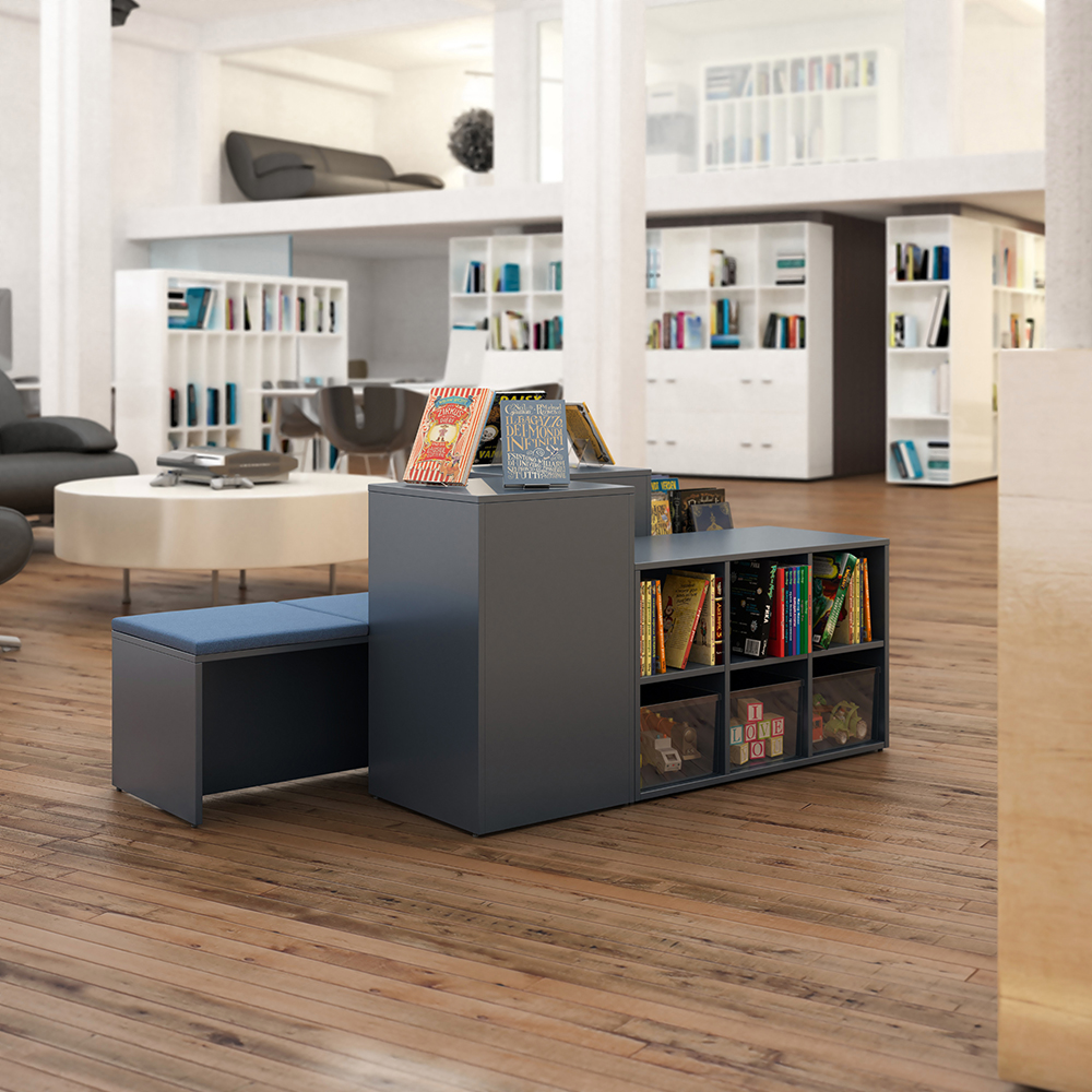 Maria is a series of podiums with browser available in 2 sizes (50 cm and XL 64 cm) in 3 different heights (Mini, Midi and Maxi) for flexible library interior design solutions.