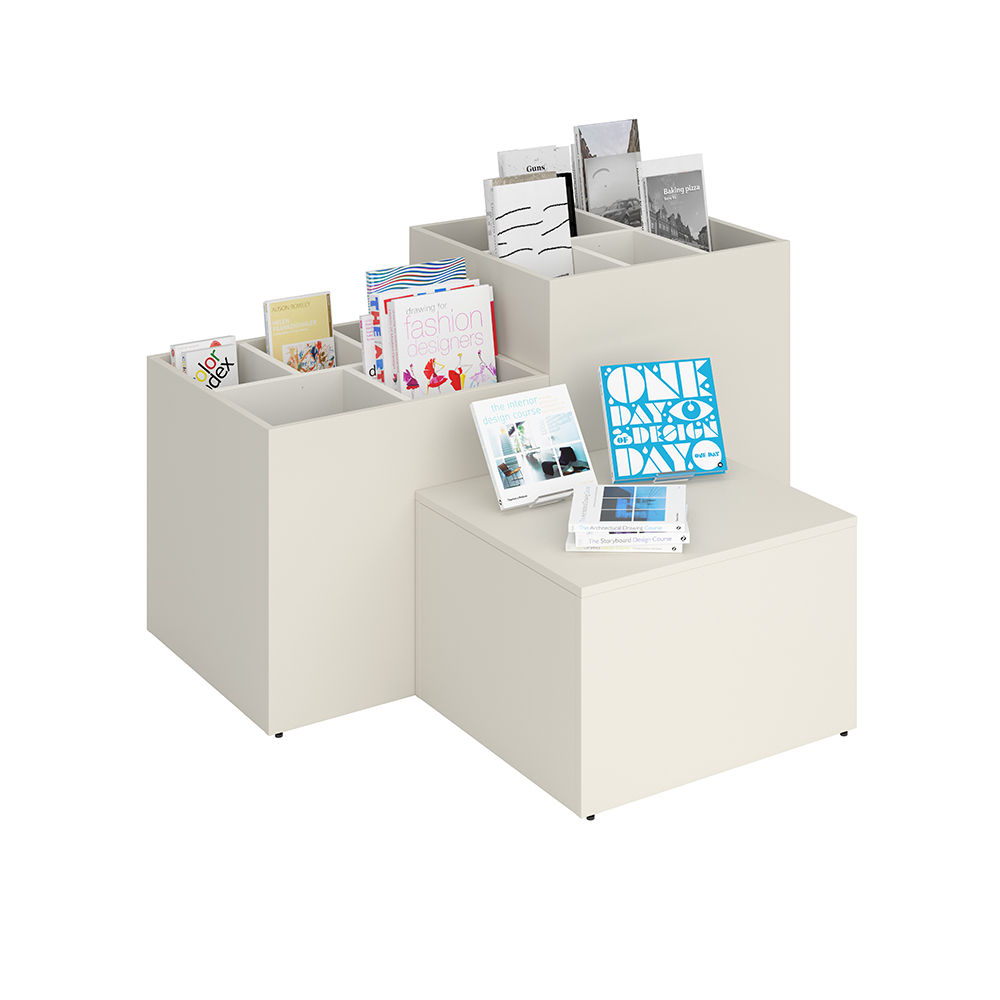 Maria is a series of podiums with browser available in 2 sizes (50 cm and XL 64 cm) in 3 different heights (Mini, Midi and Maxi) for flexible library interior design solutions.