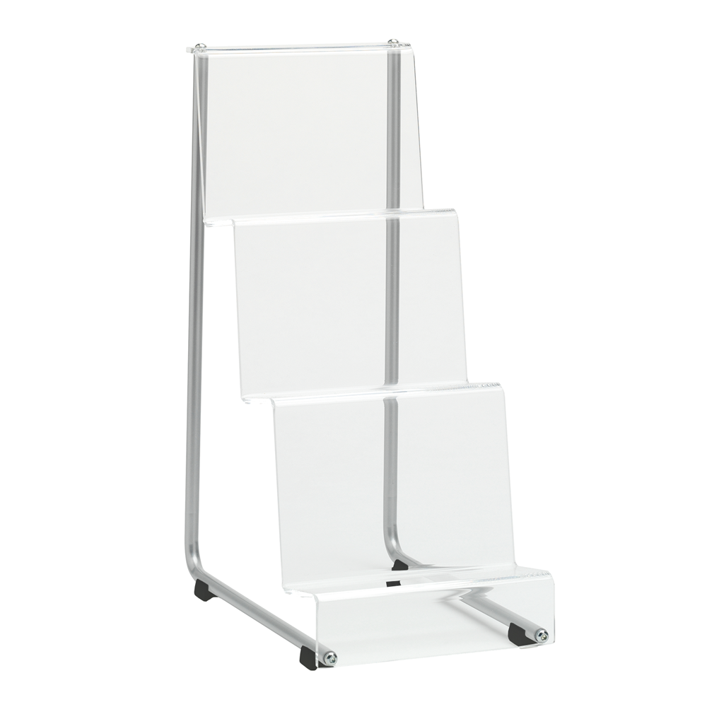 Freestanding, single-sided, 3-tier stand for forward-facing display of books.