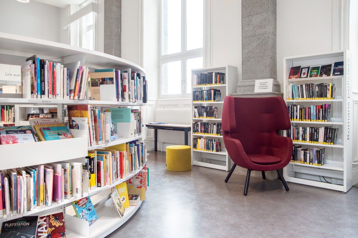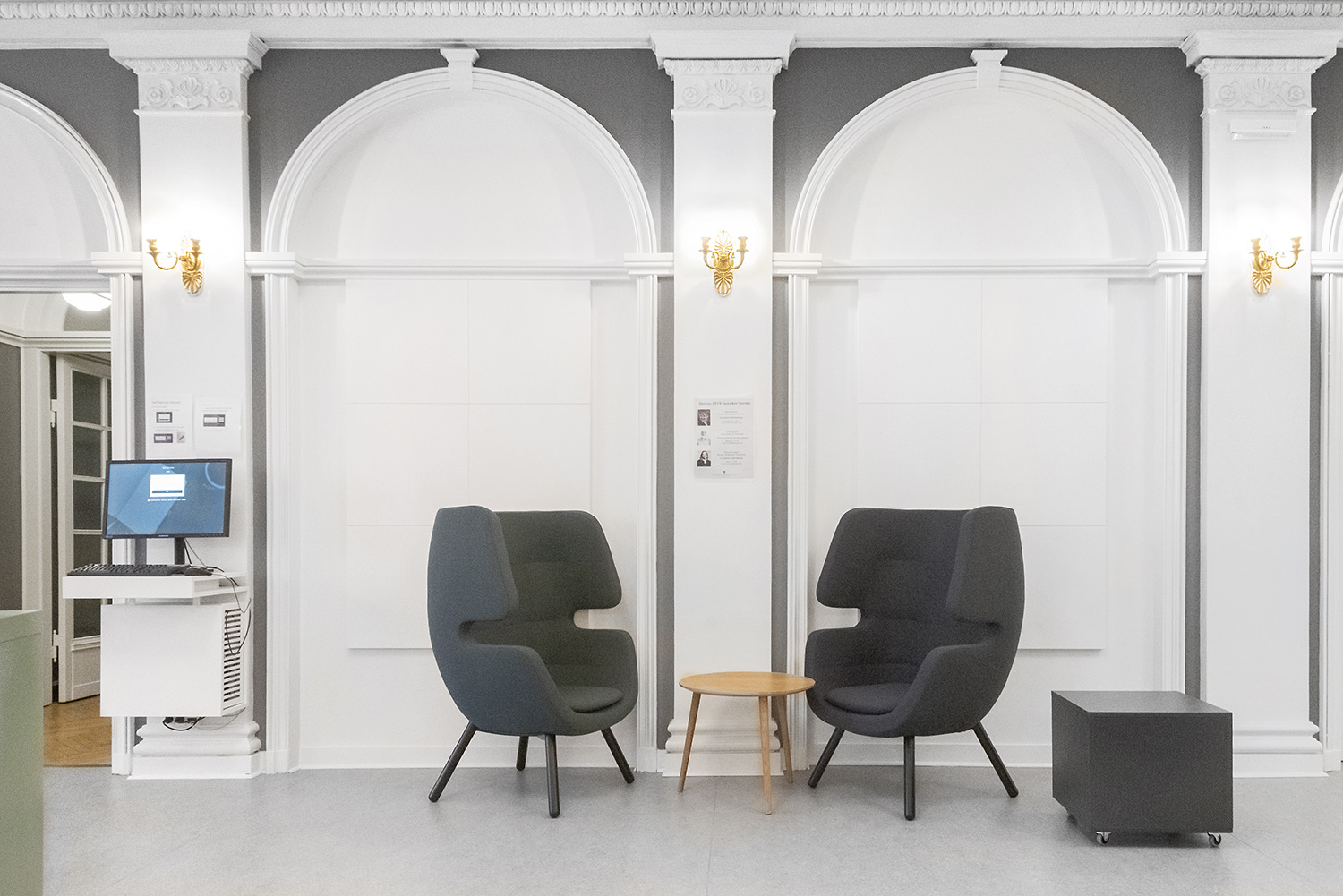 Moai looks like the massive face sculptures on Easter island. The sofa and chairs have a special and personal design which at the same time compliments and add contrast to other library furniture.