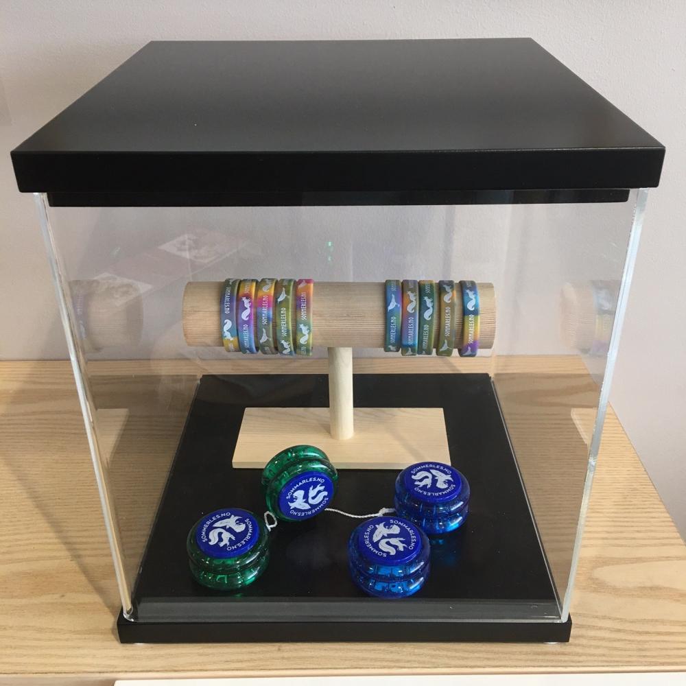 Display with 2 Cubes includes 1 top and bottom set + 2 Cube modules + either 1 display holder OR 1 partition.